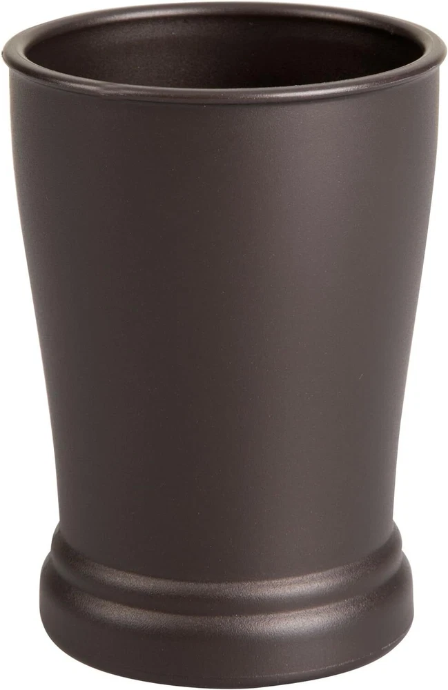 iDesign Tumbler Cup for Bathroom Organization, 1 Count (Pack of 1), Bronze Product Details Finish Type: Bronze Unit Count: 1.0 Count Manufacturer: InterDesign Product Dimensions: 3 x 3 x 4.25 inches Item Weight: 2.4 ounces Country of Origin: China Item model number: 93750 Fabric Type: Does Not Apply Finish types: Bronze Assembly required: No Number of pieces: 1 Batteries required: No Included Components: Tumbler Color: Bronze Material: Plastic Product Dimensions: 3"L x 3"W x 4.25"H Item Weight: 0.15 Pounds Brand: InterDesign Does Not Apply TUMBLER CUP – Bathroom cups help keep bathroom accessories like makeup brushes, toothbrushes, tweezers, cosmetics and more organized VERSATILE - iDesign Tumbler Cup can be used as a toothbrush cup, makeup brush holder, can also be used for kitchen organization, or as a vanity organizer; perfect for storing items on your counter, vanity, dresser, nightstand, or desk DURABLE – Constructed of durable plastic with a stylish bronze finish, this brush holder complements any bathroom set and will last for years of quality use; sturdy base is easy to clean and prevents tipping over or sliding on a wet counter COMPACT SIZE – A must on your bathroom must haves list, this tumbler measures 3" x 3" x 4.25" to organize any space without taking up too much room IDESIGN: iDesign offers innovative bathroom storage products at a reasonable price. We’re a global leader in housewares with a mission to make every day easier with innovative products designed to help people organize and enhance their homes with style Keep your bathroom countertops clear and organized with iDesign Kent Collection Bathroom Cup. It’s perfect for keeping bathroom essentials like makeup brushes, toothbrushes, tweezers, cosmetics and more organized, but is not just a bathroom organizer. Its versatile design means it can be used throughout your home for general organization and storage. Constructed of durable plastic with a stylish bronze finish, this toothbrush holder complements any bathroom decorations and will last for years of quality use; sturdy base is easy to clean and prevents tipping over or sliding on a wet counter. Measures 3" x 3" x 4.25". With iDesign, you can live simply and sustainably every day.