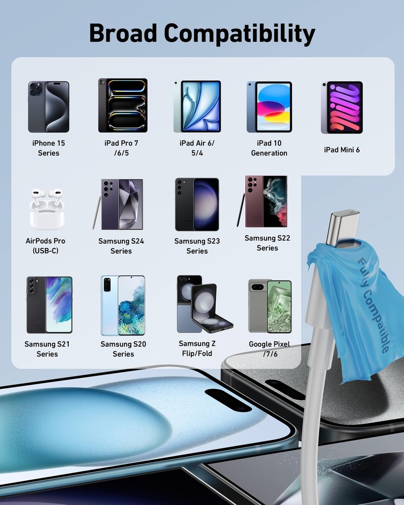 This cable is a game-changer for my car setup! It works flawlessly with my iPhone 15 Pro Max and iPad Air, delivering fast charging and stable CarPlay connection. The 3ft length is perfect, and the braided design feels durable. Love that it’s compatible with multiple devices—no more juggling cables! Highly recommend for anyone needing a reliable car charger.