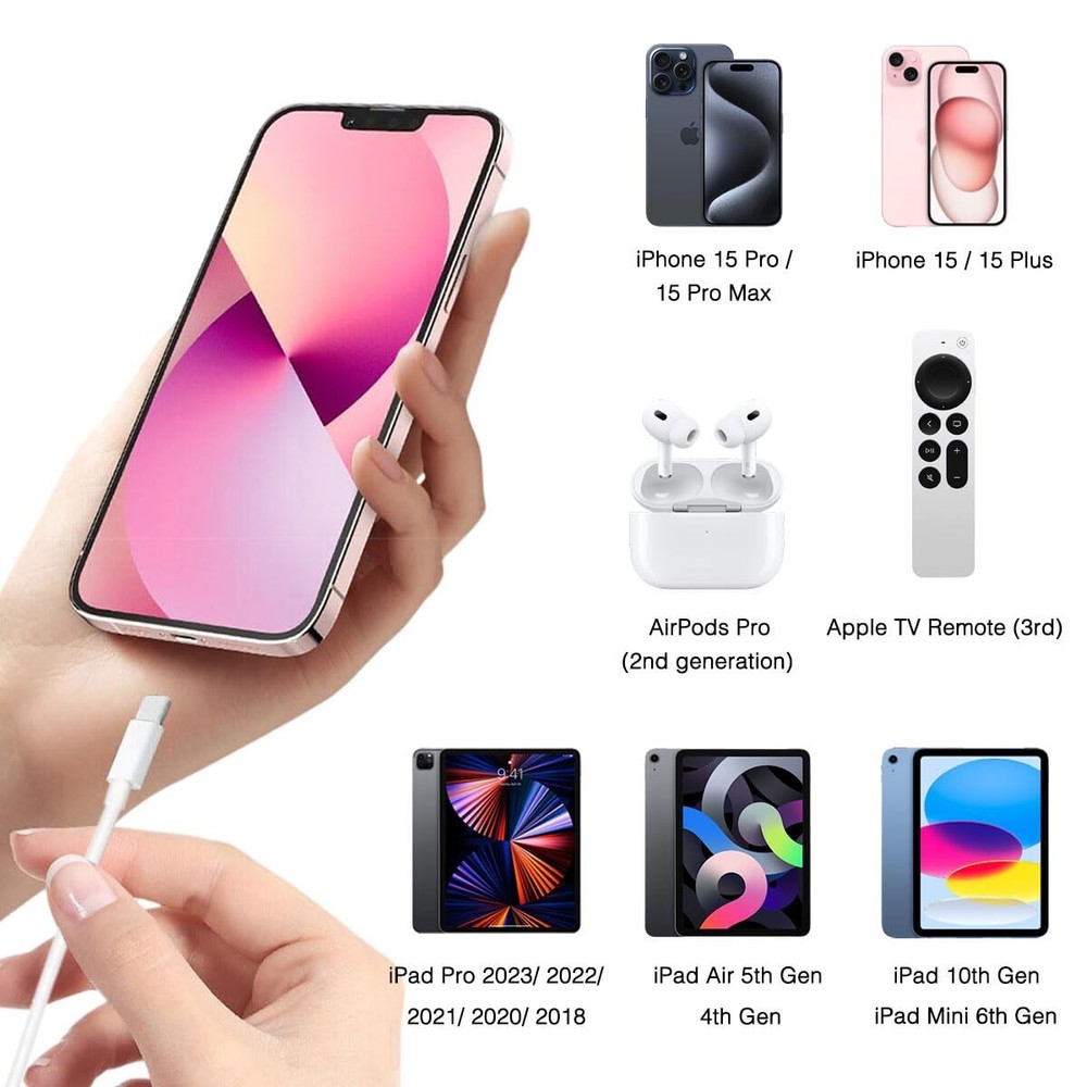 Car Carplay Cable for iPhone 15, USB A to USB C Cable for iPhone 15 Pro Max 15 Plus for Carplay USB C Cord, Apple TV 4K Remote (3rd Gen) Cable iPad Pro/iPad Air/AirPods Pro(2nd gen), Car Charger Cord His is Car Carplay Cable, USB Type C Cable (USB A - to USB-C) To connect Car Carplay, you need to check whether your Car has the Car Carplay function first, because some older cars do not have the Car Carplay function, so there is no prompt for Car Carplay when inserting. If you are not clear about whether your car has this function, You can search your Car model first to see if you can Car Carplay. Note: Only compatible with USB-C port Ipad charger. please refer to the detailed models listed in the document. Carplay Cable: - iPhone 15; - iPhone 15 Plus; - iPhone 15 Pro; - iPhone 15 Pro Max; Fully Compatible Devices: - iPhone 15/15 Pro/15 Plus/15 Pro Max - iPad Pro 2018/ 2020 / 2021 / 2022 - iPad Air 4th Generation / 5th Generation - iPad 10th Generation - iPad Mini 6th Generation - Apple TV 4K Remote (3rd generation) - AirPods Pro(2nd generation) Usage scenarios: Perfect for use in the car, the iPhone 15 car carplay cable ensures that you can charge your devices while on the move, making it ideal for road trips and daily commutes. Protect the charging port of your expensive device from damage, metal end never broken Premium copper wire core provide you greater charging stability and higher efficiency, protect against overheating, overcharging, short circuiting. This car Carplay cable connects your iPhone 15 All series, USB A to C Cable. Compatible with iPhone 15/15 Plus/15 Pro/15 Pro Max, iPad 10th Gen, iPad Pro 12.9 inch/11 inch/Air 4th/Air 5th and mini 6th Gen., and other USB C interface devices USB with any USB A adapter, specific charging speed depends on your adapter specification power, quickly transfer data with transfer speeds up to 480 Mbps. Length: 3.3Feet (1m); Color: White. Provides 30 Days Money Back Guarantee, 24-month worry free warranty to prove the importance we set on quality. Shipping from the USA All of our products are shipped from the USA, ensuring quick delivery to your destination. Payment We offer the following payment methods: PayPal, credit card, bank transfer, and eBay's secure payment system. Free Shipping & Free Returns Shipping within the USA is FREE. Additionally, any return is absolutely free for you. Risk-Free Purchase You have the option to return an item within 30 days without any justification. We cover the return shipping costs! Fast Shipping We ship immediately upon receipt of payment. Generally, the package is delivered within 2-3 days in the USA. If it takes longer, we will contact you. Quality and Costs Made in Europe, USA, China No customs fees or additional charges Total satisfaction guarantee Invoice with declared VAT available upon request in .pdf format Feedback Your feedback is very important to us. After you pay for your purchase, you will automatically receive positive feedback from us.