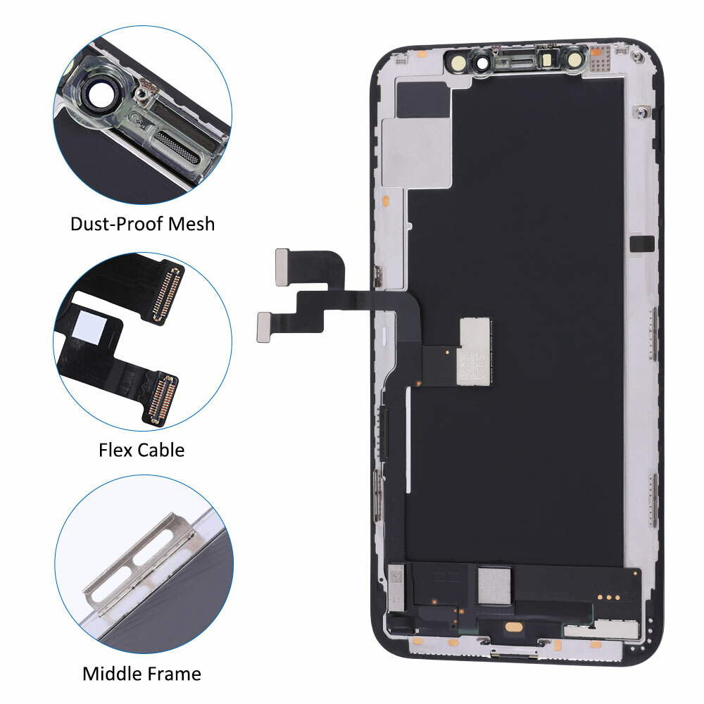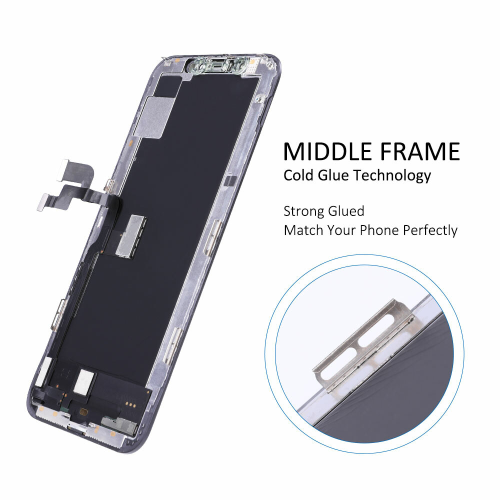 LCD Display Touch Screen replacement For iPhone XS Specifications: Each screen is tested well before shipment. Outer Glass, Touch Screen Digitizer, LCD Display, Frame, Front Camera Holder Ring, Light Sensor Holder Ring, Dustproof Earspeaker Mesh are installed into a whole assembly, easy for your replacement work. Fast shipping from USA. Before installation, please: Check the outer packing. Connect the flex cable to test the screen connection. Replacement work is professional and need some skill, if you are not for sure, please ask a technician to help you.