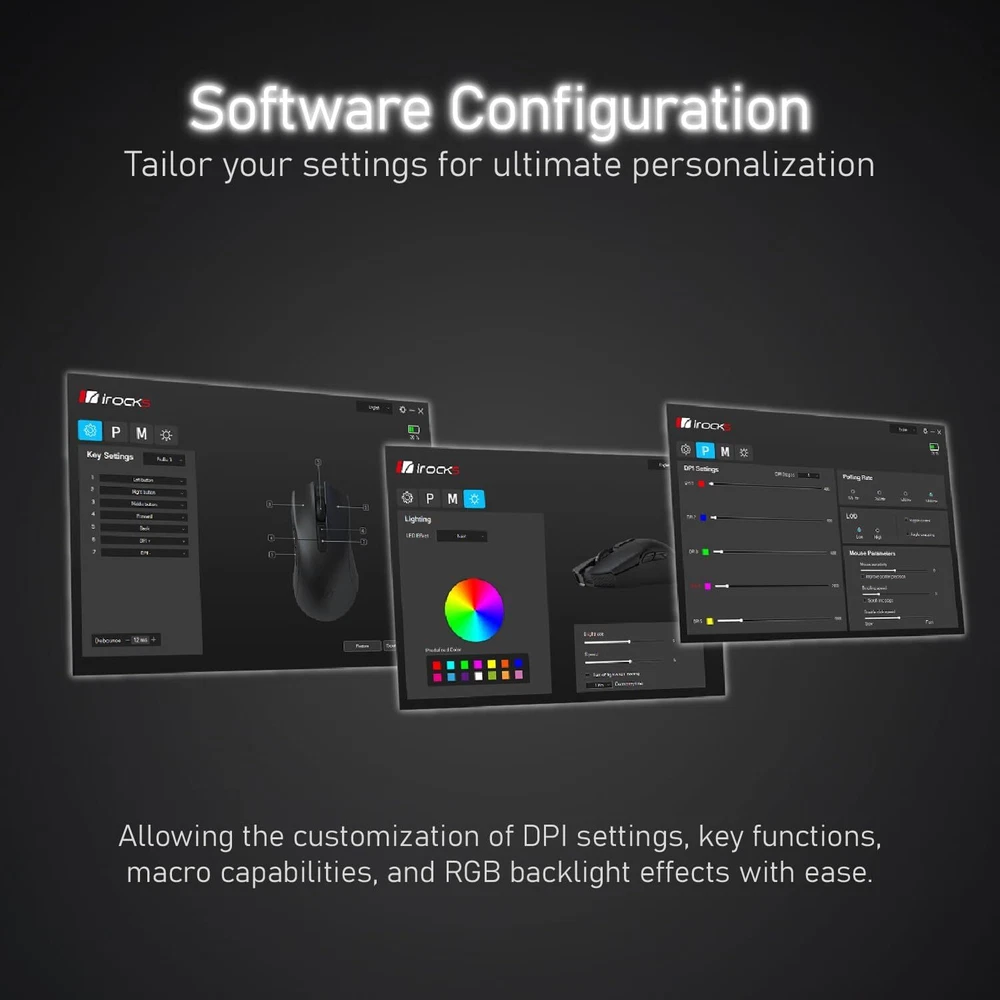 Product Description iRocks IRM31R RGB Backlight, Wireless Lightweight Gaming Mouse, Tri-Mode Connection, Kailh GM8.0 Mouse Switches, Advanced PixArt PAW3395 Optical Sensor, Resolution Up to 26,000 DPI - White High Efficiency Triple Mode Gaming Mouse ⚡️ 2.4G/Bluetooth/detachable USB-C cable wired mode for easy recharging and flexibility in connecting to a computer. Lightweight design, only 66 grams, to alleviate the burden on the wrist during gameplay. PixArt PAW 3395 Optical Sensor ⚡️ adjustable DPI up to 26,000 dpi resolution. You can promptly adjust the moving speed for a fast response during gaming. Programmable Software⚡️ convenient for DPI adjustment, programmable key functions, and light switching. Also, combining onboard memory for customized settings on the go. Kailh GM8.0 Microswitches ⚡️ it provides 80 million times click ability. Colorful Design⚡️ more color selection to match the keyboard you have and brightness decoration for working tables. About Us We are a reputable seller with many years of experience selling on eBay. Our goal is to provide high-quality products and excellent customer service. Shipping Items will be shipped within 1-3 business days when we received payment. (Orders are not processed on weekends & holidays) Tracking information will be sent once item is shipped. Delivery time depends on destination and other factors Item is shipped to ebay address. Leaving correct address can minimize delay. For international shipping and shipping to Guam, Hawaii and Alaska, Please contact us before placing the order. International buyers please note: Import duties, taxes and charges are not included in the item price or shipping charges. These charges are buyer’s responsibility. We will try our best to reduce the risk of the custom duties. Local pick-up is unavailable at the moment. Contact Us We reply any email messages within 1 business / working days(off-duty at weekend). If you do not get a response from us, then please check your junk or spam mailbox. Our Business hours: Mon-Fri 9:00-18:00, UTC/GMT +8 hours. Please contact us either by clicking "contact seller" in the "purchase history" section or simply click "ask a question" at the bottom of this page. If you are unsatisfied with our item or service, please contact us before leaving any feedback. We are committed to resolve all issues in a friendly and satisfactory manner.