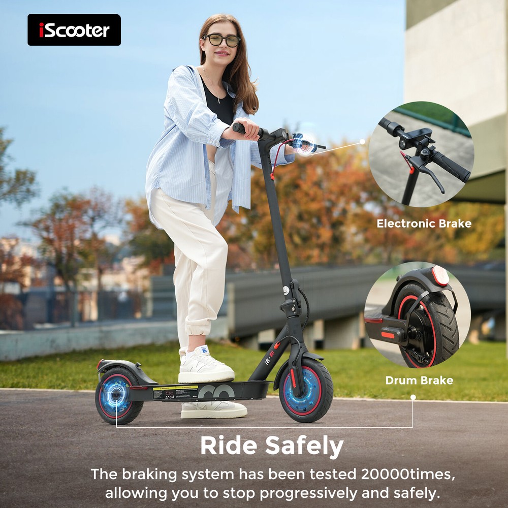 iScooter Electric Scooter 350W Adult Long Range Fast Speed Folding E-Scooter Intelligent Powertrain The 350w motor releases 100tn.m Kinetic energy instantly, experience varied acceleration onslopes from 0-15° degrees. Headlight and Rear Light One-Click turns on/off headlight, it can ensure your riding safely in dark environments and smartrear light design improves more visibility Double braking systems Front Eletronic Brake + Back Disc Brake ensure quick response and strong breaking power forextra safety Revolutionary Battery Performance Enabling Speeds of up to 15mph. Comfortable Commuting Safe teenager electric scooter can easily handles your commute and travel Foldable Design The net weight is 26.4lbs and this scooter can be carried easily The package includes: 1 x i8 Electric scooter 1 x Charger 1 x Allen Wrench 4 x Screws 1 x Manual Payment Delivery details Return Feedback Contact us Payment * We accept PayPal only * Please verify your address during checkout. We are not responsible for any wrong or undeliverable addresses. * If there is anything wrong with the checkout or you need us to combine the shipping, please kindly feel free to contact us. Delivery details 1. Items are generally shipped out the next business day after your payment has been cleared (Sat. Sun. excluded.) 2. The shipment usually takes 3-5 business days (Saturday and Sunday excluded), if you need the item urgently, please contact us for detail before purchase. * We Ship to Payment address ONLY. So please confirm shipping Address prior to your payment. We are not responsible for any wrong or undeliverable addresses. Return Products with quality problem in 30 days can be returned and refund /replaced (Item in resalable condition) Products with quality problem in 1 year can be returned and repaired. (For more details, please read our warranty policy). Feedback Contact us if you have any question, please give us a chance to serve you, negative feedback couldn’t solve anything, communication Please! Contact us Welcome back to our store! Customers satisfaction is our top priority.