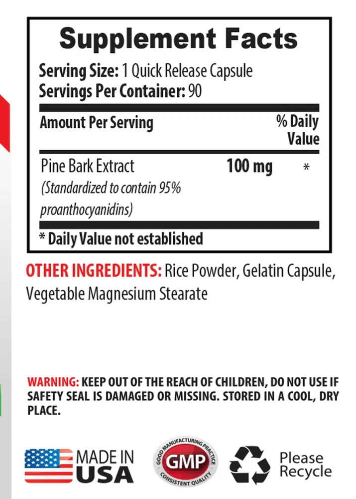 immune support for all - PINE BARK EXTRACT - brain enhancement 2 BOTTLE PINE BARK EXTRACT BOOSTS IMMUNE SYSTEM ANTIOXIDANT PROVIDER SUPPORTS HEALTHY BLOOD SUGAR SUPPORTS BRAIN FUNCTION ANTI INFLAMMATION PROMOTER HEART HEALTH SUPPORT BLOOD PRESSURE BALANCED 2 BOTTLE = 180 QUICK RELEASE CAPSULES PINE BARK EXTRACT: Pine bark extract has been used in folk remedies all around the world. It has potent antioxidants and compounds that help dilate blood vessels. Pine bark extract is made from the bark of a European coastal pine tree Landes or maritime pine. The scientific name is Pinus maritima. Have a look at the great benefits this natural supplement can bring. PINE BARK EXTRACT BOOSTS IMMUNE SYSTEM: Keeping the immune system strong is not only important when it comes to remedying infection but also helps calm autoimmune conditions. Pine bark extract helps optimize the immune system according to an article in Nutrition Research and Practice. It helps regenerate and maintain vitamin C and E levels. Its active compounds are anti-inflammatory, reduce allergies, anti-viral, and balance the immune system. Pycnogenol also boosts nitric oxide in the body, which relaxes and protects blood vessels. PINE BARK EXTRACT ANTIOXIDANT PROVIDER: in poor health, your body will produce an excess of free radical compounds that trigger inflammation throughout the body, damaging your DNA and compromising your health. Antioxidants extinguish these internal fires. Research has shown that Pycnogenol – a formula of pine bark extract – is able to prevent and minimize this oxidative damage from free radicals. Ensuring you eat a diet high in vegetables and fruit is also important to lay the foundation for robust antioxidant intake. Avoid sugar to promote these effects further. PINE BARK EXTRACT SUPPORTS HEALTHY BLOOD SUGAR: Pine bark extract may provide some added benefits for you if you struggle with high blood sugar, pre-diabetes, or diabetes. A double blind, placebo-controlled study of 77 diabetic patients taking their prescription medications, along with 100mg of supplemental Pycnogenol, found greater improvement in blood sugar control and cardiovascular health when pine bark extract was implemented. PINE BARK EXTRACT SUPPORTS BRAIN FUNCTION: If you’ve been struggling with forgetting small details – like where you put your car keys or what you’re supposed to pick up for dinner – you may be suffering from the early signs of age-related cognitive decline. Stress, poor diet, and lack of sleep can all contribute to sub-optimal brain function, and while diet and exercise are fantastic for boosting healthy brain function, so too is pine bark extract. New research shows that adults over the age of 55, supplementing with pine bark extract over the course of one year, showed superior results in brain related tasks compared to placebo groups. The researchers believe the benefits stem from pine bark extract’s antioxidant effects and ability to reduce oxidative stress PINE BARK EXTRACT ANTI INFLAMMATION PROMOTER: Cytokines are a group of pro-inflammatory molecules that are released when you get a cold or flu, suffer from a fall or injury (or train too hard in the gym!), or if you’re struggling with a chronic health condition. Research shows that pine bark extract is capable of reducing pro-inflammatory cytokines IL-1 and IL-6, responsible for many of the adverse effects of chronic inflammation. PINE BARK EXTRACT HEART HEALTH SUPPORT: Cardiovascular disease is the leading killer worldwide. Pine bark extract helps to lower bad cholesterol, which is believed to clog and block arteries while elevating good (HDL) cholesterol. It also helps reduce chronic inflammation and prevent platelets from sticking together. According to a 2015 study in Evidence Based Complementary and Alternative Medicine, pine bark extract helps prevent arteries from developing atherosclerosis, a precursor to a clogged artery. A 2012 study in the European Heart Journal showed pine bark extract could help improve overall health and function of arteries. PINE BARK EXTRACT BLOOD PRESSURE BALANCED: Hypertension, or high blood pressure, results when there is increased stiffness in the arteries. It is diagnosed when the systolic pressure (the top number) is above 140 and/or the diastolic pressure (bottom number) is above 90. It also helps control blood pressure according to a 2016 study in Phytomedicine. CAUTION: Do not exceed recommended dose. Pregnant or nursing mothers, children under the age of 18, and individuals with a known medical condition should consult a physician before using this or any dietary supplement. These statements have not been evaluated by the Food and Drug Administration. This product is not intended to diagnose, treat, cure, or prevent any disease. GREAT QUALITY SUPPLEMENT