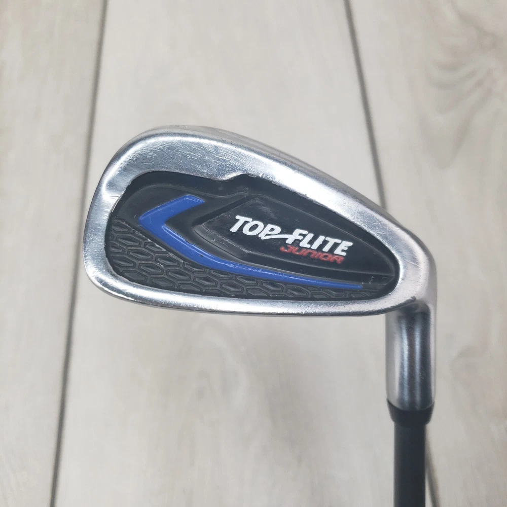 Pre-owned in good condition with a few small marks please see all pictures exact condition. The words on the handle are partially worn off. This is a Top Flite Junior 9-Iron golf club for youth, designed for right-handed players. It features a black stainless steel head with a blade shape and graphite shaft. The club has a standard lie angle and a loft of 42-45 degrees. It is 34.5 inches in length and is a single club with a youth flex, suitable for junior players. Personalization is not available for this item.