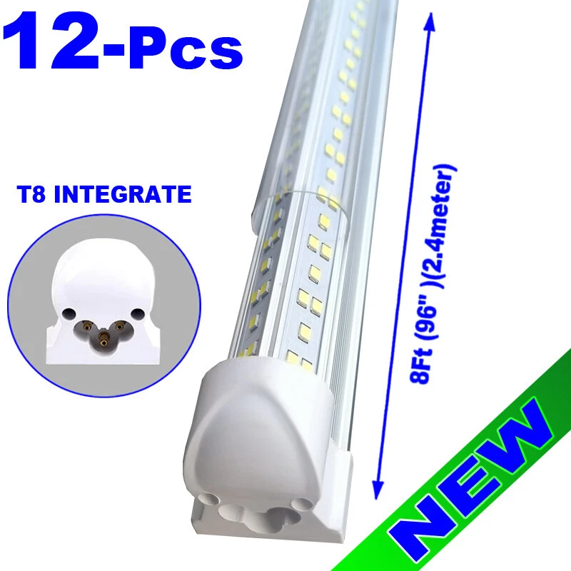 FAST DELIVERY - Ship from New Jersey or Los Angeles Warehouse via FedEx , 3-7 Days Delivered Your Door . SCIENTIFIC DESIGN - 8Ft LED Shop Lights Fixture is Made of 6500K Cold White SMD2835 LED Chip ,Plastic Clear Cover , Aluminum Bracket Housing ,and AC85-277V Constant Current Driver . It can work in -68F to 120F Temperature Conditions EASY INSTALLATION - The Integrated Tube Fixture Can be Install on Wall or Ceiling ,Easily Replace Traditional Fluorescent Tube Bulb . Plug and Play , Free Accessories (Power Cords, Connector , Extension Cords , Clip and Screw ) Come with Tube Lights Together WIDE APPLICATION - Linkable 8Ft Bulbs Widely Used in Garage Ceiling , Barbershop , Schools, Hospitals Basement , Factory Warehouses , Supermarkets Cooler Door , Offices, Shops,Hotels, etc led shop light 8ft 144w led Strip Lights 12PC Cold White LED Garage Lights 12pc FAST DELIVERY - Ship from New Jersey or Los Angeles Warehouse via FedEx , 3-7 Days Delivered Your Door . SCIENTIFIC DESIGN - 8Ft LED Shop Lights Fixture is Made of 6500K Cold White SMD2835 LED Chip ,Plastic Clear Cover , Aluminum Bracket Housing ,and AC85-277V Constant Current Driver . It can work in -68F to 120F Temperature Conditions EASY INSTALLATION - The Integrated Tube Fixture Can be Install on Wall or Ceiling ,Easily Replace Traditional Fluorescent Tube Bulb . Plug and Play , Free Accessories (Power Cords, Connector , Extension Cords , Clip and Screw ) Come with Tube Lights Together WIDE APPLICATION - Linkable 8Ft Bulbs Widely Used in Garage Ceiling , Barbershop , Schools, Hospitals Basement , Factory Warehouses , Supermarkets Cooler Door , Offices, Shops,Hotels, etc