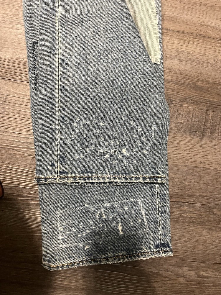 Elevate your denim game with these Levi's 501 Selvedge Patchwork Jeans. The unique design, made from repurposed selvedge fabric, adds a touch of nostalgia to your wardrobe. The regular fit and size 32 waist make them suitable for any occasion. Crafted by Levi's, a brand known for their quality and durability, these jeans are a must-have for any denim enthusiast. The model number Levi's 501 ensures that you are getting a classic and timeless product. Perfect for men who appreciate style and comfort, these jeans belong in every wardrobe.