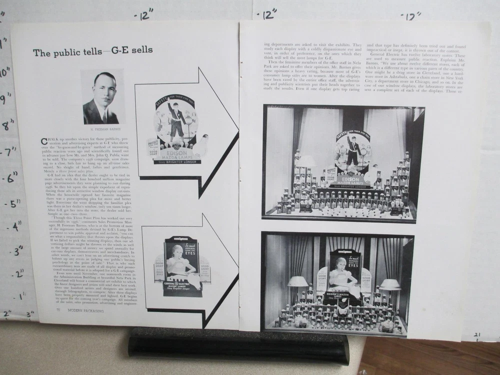 ITEM DESCRIPTION magazine ad 1936 GENERAL Electric store display Edison Mazda light bulb sign $18.00 CONDITION--fine or better this listing is for one page or multi page ad and NOT an entire magazine Additional condition comments (if needed) : comes from a rare industry publication that was not sold to the public and focused on product packaging SIZE is indicated by the ruler or INCH markings in the photo OFFERS ---I list 20,000+ items a month on EBAY. It is easier to put Best Offer on everything but because I lose 15% to EBAY fees no matter what, I may not be willing to take offers on everything I have listed. COMBINED SHIPPING ? YES...I can do this but ONLY If you follow the below instructions. To be clear, "combined shipping" is when you buy 3 items, for example, each with a shipping charge of $8, but since I can ship all 3 in the same box, you get charged $10-12 instead of $24. I cannot "combine shipping" after you have already paid. 1) DO NOT USE the cel phone app ! If you do, EBAY will force immediate payment and charge you full shipping on each item. I will not refund your money if this happens. 2) You must log into EBAY with a browser (Chrome, Safari etc) on your phone, computer or laptop to avoid this. 3) Put all items in your Cart and then, while in your Cart, click the "Request Total" link. "Request Total" will not be visible if you click "Checkout" under your Cart icon. You must click "View Cart" under your Cart icon. The URL should say cart.ebay.com Because EBAY and PAYPAL have made partial refunds so complicated, I will no longer be refunding $ if you do not follow these instructions. MY PHOTOS - If more than 1 item is shown in a photo--- then items are in SEPARATE listings unless otherwise stated ! Read description! PAYMENT-General Info PAYMENTS- USA Various payment options will show during checkout. Contact me if you need another payment option. EBAY is charging sales tax. Sellers have no control over that. PAYMENT-FOREIGN ORDERS Various payment options will show during checkout. Contact me if you need another payment option. SHIPPING COST ? .... see "SHIPPING COSTS : Shipping-Foreign" (shown below). CUSTOMS CHARGES -- your country may charge you customs fees before you can receive the package. This is not my responsibility NOR is it part of my shipping charge. It is a fee charged by the country you live in. SHIPPING COSTS SHIPPING-USA FIXED SHIPPING RATE = actual shipping cost & insurance & small handling fee ($2 or less). West Coast may be significantly higher on larger or heavier items. FYI here is what the US Post Office currently charges : SHIPPING-FOREIGN For UK, Canada,and Australia , PLEASE check with me first to make sure shipping charges EBAY has listed are correct! In the last few years, there have been HUGE increases in shipping cost outside the USA. The shipping cost listed is usually for FIRST CLASS shipping. The USPS will only insure Priority and Express shipments. ******There is a $2-$5 handling fee for foreign orders. ========================================================= Offered by DAVID WELCH ------ author of COLLECTING PEZ 1995 and Pictorial Guide to Plastic Candy Dispensers 1991. I have been a full time antique and collectibles dealer since 1989 and have been collecting since the early 1970s. I have been on EBAY since 1997. If you have questions about any negatives I have received, feel free to ask. THANK YOU TO THE PATIENT AND REALISTIC PEOPLE WHO MAKE 98% of EBAY DEALINGS A PLEASURE. I have been on EBAY since 1997 and this company's ability to make simple things needlessly difficult is unmatched by anything I have experienced elsewhere. ===================================================================== Powered by SixBit's eCommerce Solution