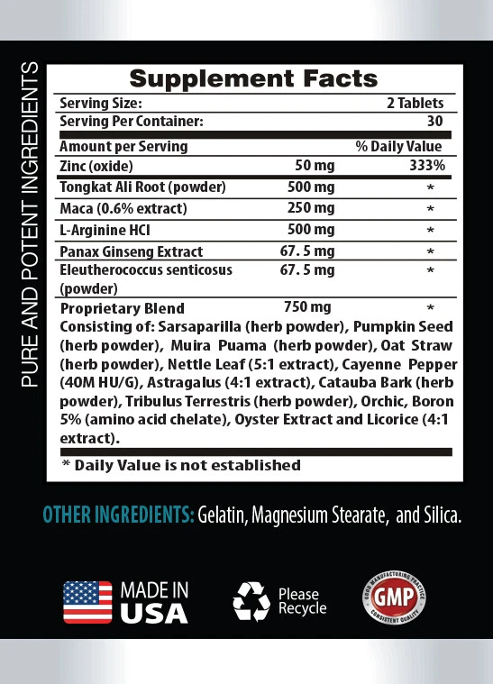 men sexual performance pill - EXTREME MALE PILLS 2185 - libido booster 1B EXTREME MALE PILLS 2185MG Male Enhancement Extra Strength Formula 1 Bottle - 60 Tablets Increase Sexual Libido Boost Testosterone Improve Mood And Much More! Private Label GMP Certified Made In USA EXTREME MALE PILLS 2185 Mg: Is a powerful complex that have strong aphrodisiac properties and have been proven to be beneficial for enhancing libido, improving sports performance and weight loss and reducing fatigue. Our unique formula includes powerful herbs like: Maca, Korean Ginseng and Siberian Ginseng, Zinx, Sarsaparilla, Pumpkin seed, Muira Puama, Oat Straw, Nettle, Cayenne Pepper, Astragalus, Catauba Bark, Tribulus Terrestris, Orchic, Oyster Extract and Boron. STRESS AND RELIEF PILLS: If you’re under extreme stress or regularly feel fatigued, take Korean ginseng, it is can be beneficial for boosting your energy levels. It can relieve , improve your mood and help you clear your brain fog and focus better. LIBIDO BOOSTER FOR MEN: When taking Tribulus Terrestris, many users find that it actually can be helpful for boosting mood and energy as well as testosterone. It gives you the ability to power through workouts and recover faster from heavy weight lifting and cardio sessions. SEXUAL DRIVE ENHANCER: Men may take ginseng for supporting sexual performance and sex drive. A 2002 Korean study revealed that 60 percent of men who took ginseng noticed an improvement in their sexual performance. In addition, research published in the British Journal of Clinical Pharmacology provided "evidence for the effectiveness of ginseng in the boosting sexual activity. INCREASE TESTOSTERONE SUPPORT FOR MEN: Since Tongkat Ali can increases levels of the testosterone, it has utility as a libido-enhancer or general male sexual aid. And second Tongkat Ali can be beneficial for general male libido enhancement. Males have been using Tongkat Ali supplements for libido enhancement for centuries ever since it was first discovered as a plant in Southeast Asia. HERBAL LIBIDO BOOSTER: Maca has been shown to increase not only the male sex drive, it is beneficial for all men's health. However, in Peru it has long been known as a natural potent aphrodisiac. Research has proven that it acts on certain intimate areas of the body, which enhance libido and increase virility boost sex drive and sexual stamina. STRESS AND RELIEF SUPPLEMENT: The research shows that Long jack may helps to decrease the cortisol levels which is responsible for stress. In reaction to the stress cortisol is produced and is the vital contributor to the weight gain associated with stress. The herb helps to lower the stress related with sleep loss, diet and exercise. Also the supplements of Long jack help to enhance memory. NATURAL TESTOSTERONE BOOSTER: The root of Tongkat Ali has been used to increase testosterone levels for a very long time indeed. It contains chemical compounds that studies have repeatedly shown can increase testosterone levels. An increase in testosterone has many beneficial knock-on effects for sexual performance, muscle growth and sex-drive increase. *These statements have not been evaluated by the Food and Drug Administration. This product is not intended to diagnose, treat, cure or prevent any disease. GREAT QUALITY PRODUCT