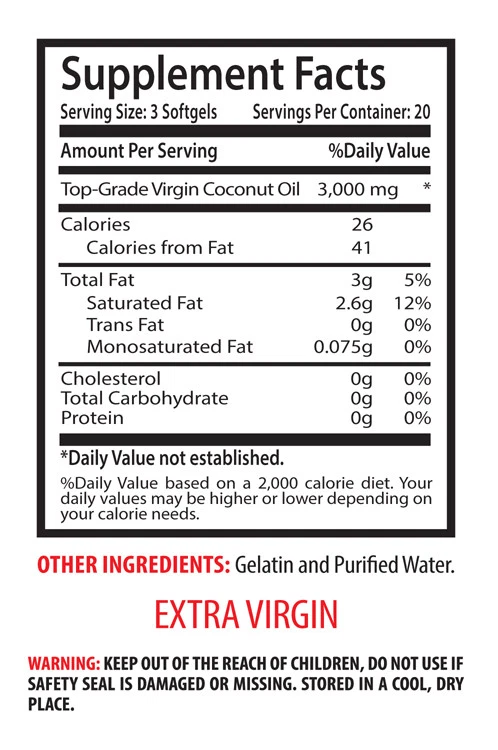 metabolism control - EXTRA VIRGIN COCONUT OIL - coconut oil virgin 2B Extra Virgin Coconut Oil 3000mg Increase HDL("Good Cholesterol") Protect Skin/Hair/Nails/Teeth Brain and Memory Booster Regulate Blood Pressure Kick Start Weight Loss Powerful Antioxidants Essential Fatty Acids Fat Burner -Made in USA- (2 Bottles, 120 Softgels) EXTRACT VIRGIN COCONUT OIL 3000MG: To date, there are over 1,500 studies proving coconut oil to be one of the healthiest foods on the planet. Coconut oil benefits and uses go beyond what most people realize, as coconut oil — made copra or dried coconut flesh — is a true superfood. The most important and sole ingredient of this supplement is virgin coconut oil. COCONUT OIL GIVES YOU ANTIOXIDANT BOOST: The high levels of antioxidants present in virgin coconut oil reduced inflammation and supported joint health more effectively than through man made compounds. According to research published in the medical journal Food and Function, coconut oil improves antioxidant levels and can slow aging. Coconut oil works by reducing stress on the liver and lowering oxidative stress. COCONUT OIL PROMOTES DIGESTION: Coconut oil improves digestion by helping the system to absorb fat-soluble vitamins, calcium, and magnesium. If coconut oil is taken at the same time as omega-3 fatty acids, it can make them doubly effective. Coconut oil can also help improve bacteria and gut health by destroying bad bacteria. Many of the benefits such as digestion support stem from coconut oil's antioxidant abilities. COCONUT OIL CAN HELP SLOW DOWN AGING LOOKS: According to research published in the medical journal Food and Function, coconut oil improves antioxidant levels and can slow aging. Coconut oil works by reducing stress on the liver and lowering oxidative stress. Also, researchers found that coconut oil may support antioxidation because of how it works with the liver. COCONUT OIL SUPPORTS HEART HEALTH: Coconut oil is high in natural saturated fats. That may not sound like a positive but the saturated fats in coconuts work in a different way than those found in animal-derived foods like butter, cream, cheese and meat. Coconut oil increases the healthy cholesterol (known as HDL) in your system, but it also helps to convert the LDL or “bad” cholesterol into good cholesterol. This can be helpful for heart health. COCONUT OIL BURNS FAT: Because of the energy-creating abilities of coconut oil and the fact it’s a no-carb oil, it is no wonder that it is beneficial in losing weight. It helps burn fat and calories, decrease appetite, and in studies it was especially helpful in losing belly fat. COCONUT OIL INCREASES ENERGY LEVELS: Coconut oil is easy to digest and also produces a longer sustained energy and increases your metabolism. When taking a quality unrefined coconut oil, you can get the most coconut oil benefits as its medium chain fatty acids are sent directly to the liver to be converted into energy. Today, many triathletes use coconut oil as their source of fuel during training and races for long-distance events. COCONUT OIL CALMS INFLAMMATION: In general, the results clearly portrayed that virgin coconut oil has a beneficial effect on joint conditions due to its abundance of antioxidants, in addition to its anti-inflammatory effects. In another recent study, coconut oil that was harvested with only medium heat was found to calm inflammatory cells. Virgin Coconut Oil can improve the system's inflammatory reactions reducing the amount of internal stresses. Supplement Facts: Serving Size: 3 Softgels Servings per Container: 20 Top-Grade Virgin Coconut Oil - 3,000mg Other Ingredients: Gelatin, Purified Water. WARNING: KEEP OUT OF REACH OF CHILDREN. DO NOT USE IF SAFETY SEAL IS DAMAGED OR MISSING. STORE IN A COOL, DRY PLACE. *These statements have not been evaluated by the FDA. This product is not intended to diagnose, prevent, treat, or cure any disease. GREAT QUALITY SUPPLEMENT
