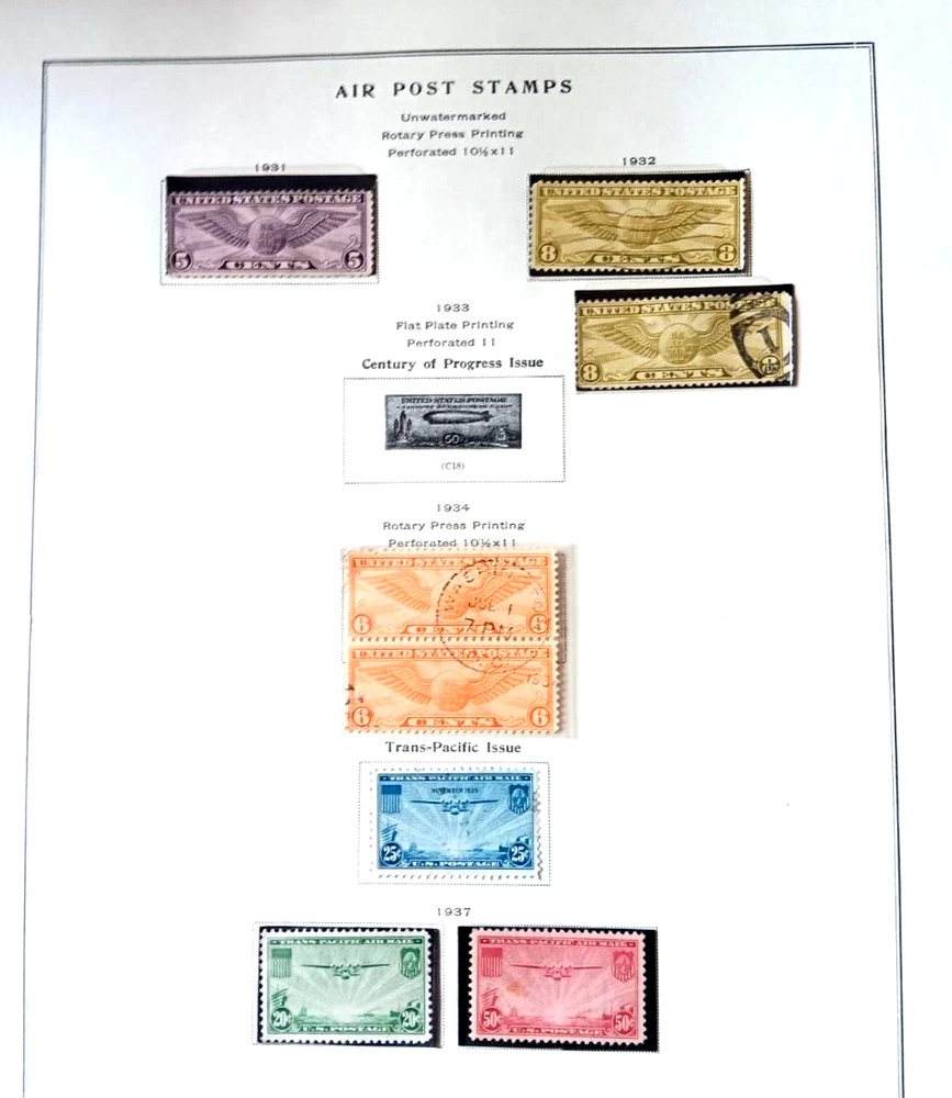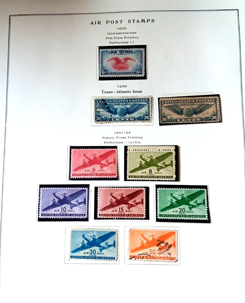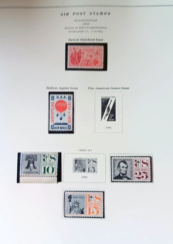 This album features a collection of U.S. air mail stamps on Scott pages, with a mix of mint and used quality. The stamps are from the United States. The album pages are designed for easy viewing and collection, making it a great addition to any stamp collection. The stamps are a mix of grades, with the majority being VF (Very Fine). This is a must-have for any stamp collector looking to expand their collection.