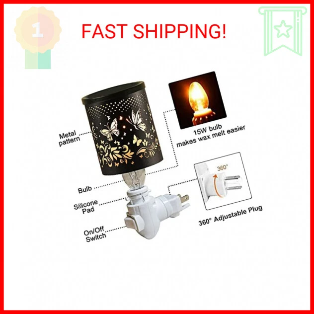 mocosa Plug in Wax Warmer,Candle Wax Warmer for Scented Wax melt Warmer,Electric Wax Burner as Gifts for Mom Grandma Women (Butterfly)… - Metal - 【Unique More Elegant Design】The Plug in wax warmer is made of metal with different patterns, a perfect addition to any contemporary home, office, gym, spa or studio. Wonderful gift for family and friends - 【Function】 Pluggable Fragrance Warmers can be used in both vertical and horizontal outlets by twisting the plug base, making them ideal above counter outlets in small rooms and spaces.Perfect for adding a decorative touch and artistic design to create a relaxing ambience in any room - 【Easy and Safe Operation】 Wax melter is easy to operate. Plug in power, turn on the switch, the fragrance spreads all around the room soon, creating a pleasant and relaxing atmosphere. Quick, safe and clean alternative to candles - 【Choose The Scent You Like】 Kicking bad smells out of your house, restroom, office, garage, kitchen, basement, or any other place you want to stay. Stop putting up with the odors and deal with them with scented candles and wax presses. The soft glow of the warming bulb creates the ambiance and fragrance of a lit candle, without flame, soot, or other pollutants,Keep all your troubles away by creating a comfortable environment - 【45 DAY GUARANTEE】:This product has CE certification, ETL certification. If you aren't completely satisfied with our premium wax warmer, simply contact us within 45 days of purchase and we will easily resolve the issue. We offer a risk-free 45-day guarantee with every purchase The Fine Print Payments We accept the following payment methods Visa/Mastercard PayPal Apple Pay Google Pay Please pay as soon as possible after winning an auction, this will allow for quicker shipping times! Returns We accept returns . You can return unopened items in the original packaging within 30 days of your purchase with receipt or proof of purchase . If 30 days or more have passed since your purchase , we cannot offer you a refund or an exchange . Upon receipt of the returned item , we will fully examine it and notify you via email , within a reasonable period of time , whether you are entitled to a return . If you are entitled to a return , we will refund your purchase price, and a credit will automatically be applied to your original method of payment . Only regular priced items may be refunded . Sale items are non -refundable . Buyer is responsible for return shipping costs + a 20% restocking fee. Shipping Shipment processing time All orders are processed within 2-3 business days. Orders are not shipped or delivered on weekends or holidays. If we are experiencing a high volume of orders, shipments may be delayed by a few days. Please allow additional days in transit for delivery. If there will be a significant delay in shipment of your order, we will contact you via email or telephone. Shipping rates & delivery estimates Shipping charges for your order will be calculated and displayed at checkout.