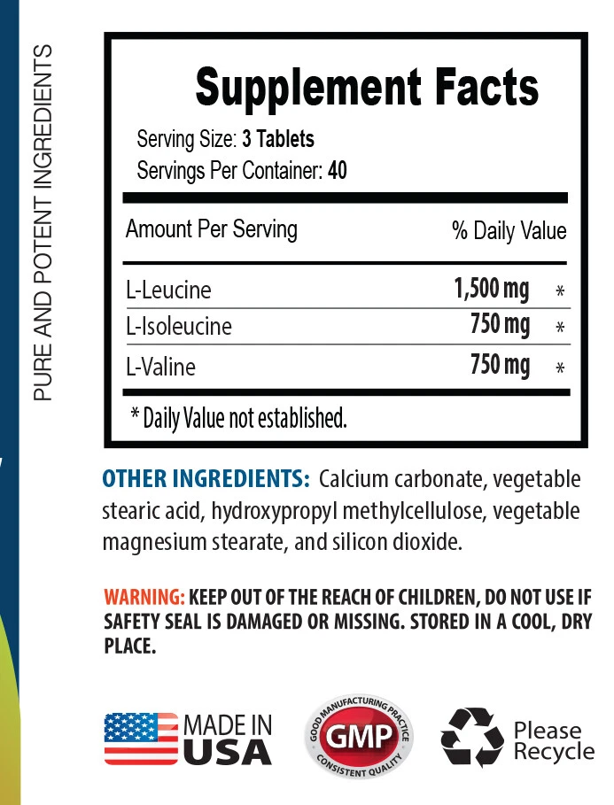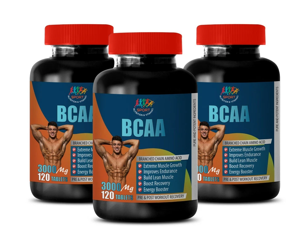 muscle tear filler - BCAA 3000MG - essential amino pre workout 3 BOTTLE BCAA 3000MG FAT BURNER STOP LOSING MUSCLE ATHLETIC RECOVERY BOOSTER BUILD MUSCLE BLOOD SUGAR STABILIZER ENERGY SUPPORTER STRENGTH & POWER 3 BOTTLE = 360 TABLETS BCAA 3000MG: Branched chain amino acids can be derviced from virtually all protein rich foods - especially the essentials whihch we cannot produce on our own. Consumption of protein rich foods or BCAA supplements has shown an increase in strength, muscle recovery and overall muscle performance in humans. Take this pre and post workout for proper use and proper results! Enjoy! BCAA 3000MG FAT BURNER: If you’re looking to build muscle and simultaneously shed some extra body fat, leucine may be just what you need. In fact, several studies have found that it can have some powerful effects when it comes to fat loss. BCAAs will help your body burn fat at rest after workout too, this afterburn increases your exercise effectiveness. BCAA 3000MG STOP LOSING MUSCLE: BCAAs can help prevent muscle wasting or breakdown. Muscle proteins are constantly broken down and rebuilt (synthesized). The balance between muscle protein breakdown and synthesis determines the amount of protein in muscle. Muscle wasting or breakdown occurs when protein breakdown exceeds muscle protein synthesis. Muscle wasting is a sign of malnutrition and occurs with chronic infections, cancer, periods of fasting and as a natural part of the aging process. BCAA 3000MG ATHLETIC RECOVERY BOOSTER: Some research suggests BCAAs can help decrease muscle soreness after a workout. It’s not uncommon to feel sore a day or two after a workout, especially if your exercise routine is new. This soreness is called delayed onset muscle soreness (DOMS), which develops 12 to 24 hours after exercise and can last up to 72 hours. While the exact cause of DOMS is not clearly understood, researchers believe it’s the result of tiny tears in the muscles after exercise. BCAA 3000MG BUILD MUSCLE: The BCAA leucine activates a certain pathway in the body that stimulates muscle protein synthesis, which is the process of making muscle. In one study, people who consumed a drink with 5.6 grams of BCAAs after their resistance workout had a 22% greater increase in muscle protein synthesis compared to those who consumed a placebo drink. BCAAs play an important role in building muscle. However, your muscles require all the essential amino acids for the best results. BCAA 3000MG BLOOD SUGAR STABILIZER: Hyperglycemia, or high blood sugar, can wreak havoc on your health. In the short term, high blood sugar can cause symptoms like fatigue, unintentional weight loss and increased thirst. Left unchecked for even longer, high blood sugar can have even more serious consequences. A human study published in Metabolism showed that leucine taken alongside glucose helped stimulate insulin secretion and decrease blood sugar levels in participants. BCAA 3000MG ENERGY SUPPORTER: Just as BCAAs may help decrease muscle soreness from exercise, they may also help reduce exercise-induced fatigue. Everyone experiences fatigue and exhaustion from exercise at some point. How quickly you tire depends on several factors, including exercise intensity and duration, environmental conditions and your nutrition and fitness level. BCAA 3000MG STRENGTH & POWER: A study performed on 26 men tested how leucine supplementation could lead to increased strength, measured through the maximum weight someone can lift five times. Those that received L-leucine supplements were able to lift heavier weights. CAUTION: Do not exceed recommended dose. Pregnant or nursing mothers, children under the age of 18, and individuals with a known medical condition should consult a physician before using this or any dietary supplement. These statements have not been evaluated by the Food and Drug Administration. This product is not intended to diagnose, treat, cure, or prevent any disease. GREAT QUALITY PRODUCT