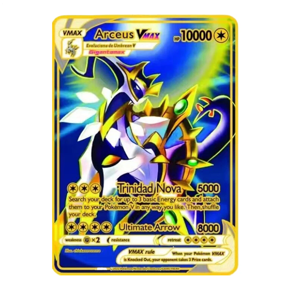 Pokemon Arceus VMAX Metal Card Collection Trading Single Cartoon Cards Game Product Description Attractive Design: Make your assortment truly stand out with the attractive metal game cards. Their unique metal design will add value and increase the exclusivity of your personal collection. Nice Craftsmanship: Experience the perfect game adventure with our metal game cards that are designed with stunning artistic patterns and enhanced with metal effects to transform each card into a masterpiece. Extensively Applicable: Suitable for competitive games, these metal anime game cards not only provide strategic advantages but also build friendships and social connections. Helpful and Useful: Prized by collectors for its beauty and significant meanings, these metal game cards are not only perfect for kids but also suitable for engaging role-play games. Nice Choice: Enhance your game with our unique metal game cards. Perfect for youth, teens, and adults, our anime cards connect you to a passionate community of collectors and enthusiasts. Elevate your game with our metal anime cards. These exquisite designs add a unique touch to any collection. Perfect for competitive or role play games, our cards are designed towards the youth. Specifications: Product Size: about 2.2x3.5 inches/5.59x8.89cm Weight: about 17g Packing List: 1 * Game card Notes: 1. Due to the lighting effects and photographing angles, there is a color difference in the product, please understand. 2. Due to manual measurement, there is a tolerance in the product size. Payment 1.PayPal is a preferred Payment method. 2.You can make a Credit payment via Paypal.Paypal will let you use MasterCard,Visa to pay. 3.Payment should be completed within 3 days after auction closed, or unpaid dispute will be filed for an closing auction.An unpaid case will be filled after 4 days. Delivery details 1. We ship to many countries. 2. Delivery Time: Ship from China via Speedpak to US (takes 8-12 days) Ship from China via others shipping method to other countries (takes 15-60 days) 3. If you want to choose another address, please leave us a message on ebay.Please check your shipping address carefully before checkout,it can't be changed if order completed. Seriously promise:Refund or resend will be offered if item still not arrive in 7-10 business days. Just send us an email,we will give you a satisfied solution as soon as possible. Return policy 1.All item comes with Basic 3 Months Sellers Warranty, if item defective in 3 months,We will offer replacement without extra charger (including shipping fee) After we receive the defective item. If item Defective after 3 Month, Buyers can still send it back, We will contact suppliers or Manufactory for Warranty. Buyers Might Need pay the Shipping fee For resend the replaced item. 2.If item DOA(Dead of Arrival), Buyers can return it in 30 Days, we will replace it with new item after we receive DOA item. Please Contact us Before you sent the item back. 3.All item can be returned for exchange only. The buyer has responsibility for all return shipping including DOA or defective return. About Feedback When you receive the item and satisfied with the product, please leave positive feedback and 5 scores DSR. We will leave a 5 Scores DSR feedback for you. If, for any reason you are not satisfied with your purchase, please contact via Ebay Message and we will do our best to resolve it. Please don't leave neutral or negative feedback without any communition with .