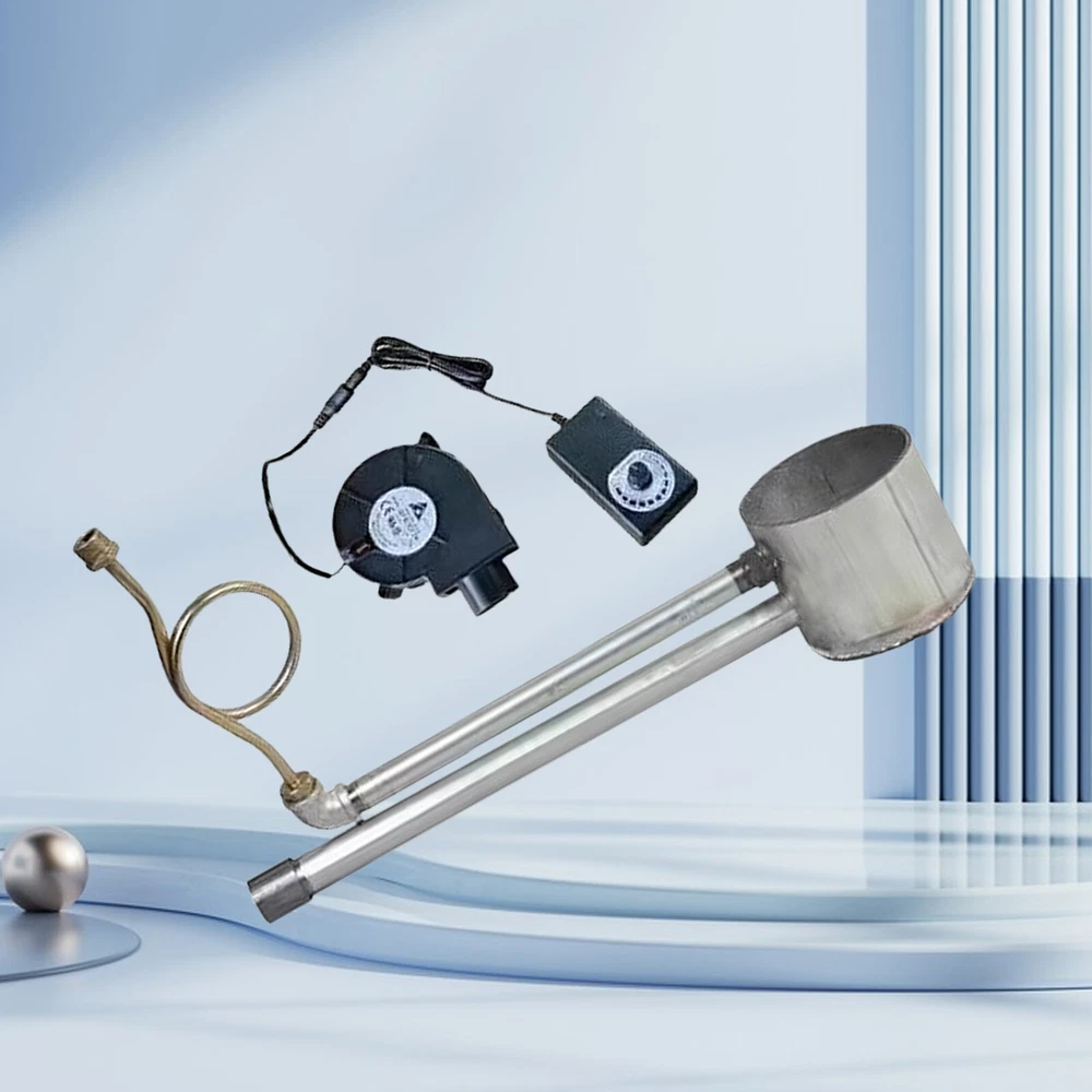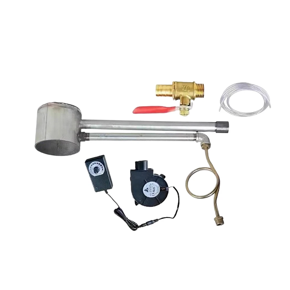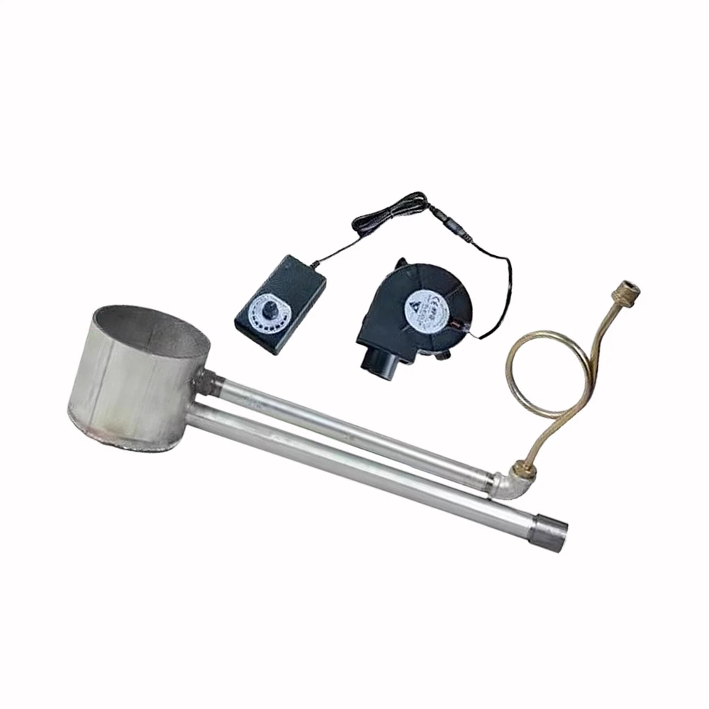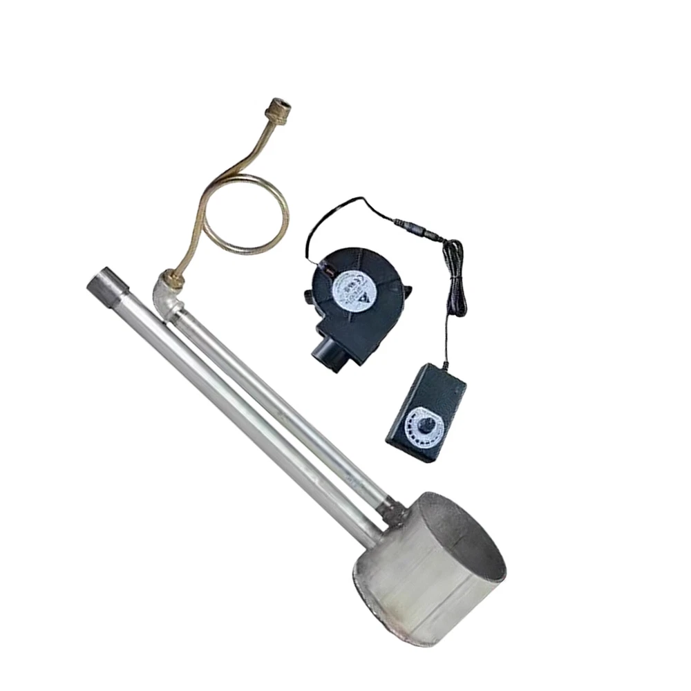 Waste Oil Burner Old Motor Oil Stove Cooking Heating Furnace Burning Tool This product is a new design of waste oil burning tool, with high pressure electric blower, which can make waste engine oil get fully burned. The experiment proves that when the waste oil is ignited, it takes only 3 minutes to boil 1 kg of water. It will help you make full use of used engine oil for heating, cooking, etc. Material: galvanized steel (The furnace will turn red after high temperature combustion, but it will not affect the use) Blower Input Voltage: 5-12V Instructions: 1. Prepare a bucket for waste oil by yourself and install the valve at the outlet. 2. Open the valve, let the oil flow into the burning furnace to a depth of 1 cm and then close the valve. 3. Ignite some flammable paper and put it into the furnace for full combustion. 4. Turn on the blower and wait for the waste oil to burn up gradually, adjust the air intake according to the fire speed. 5. Open the oil inlet valve and enter the combustion state, the fire will gradually increase. The furnace will burn better as the temperature rises.