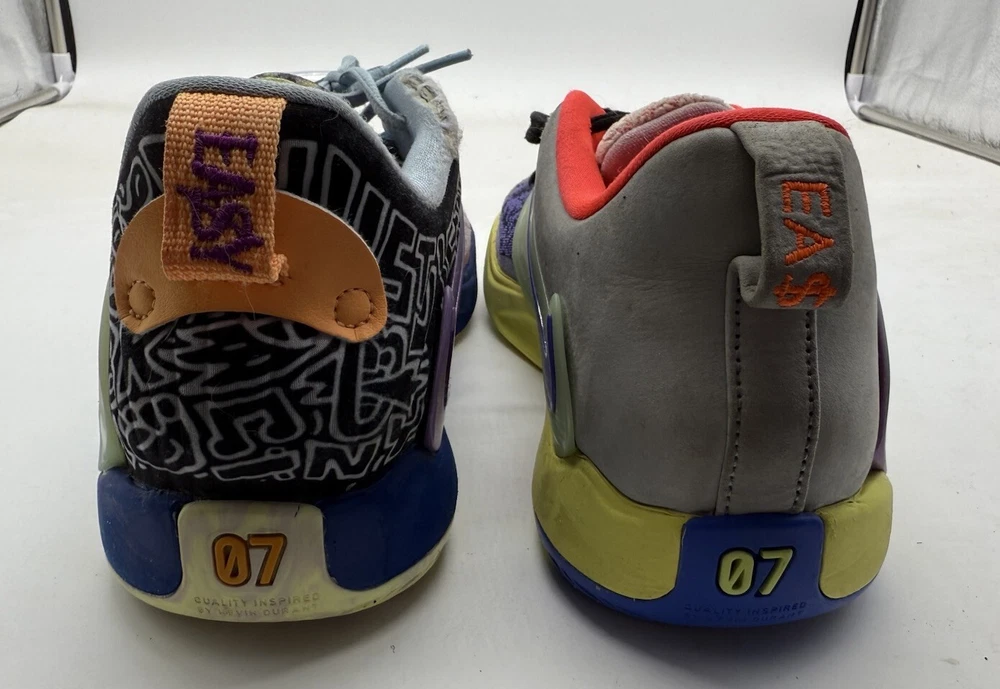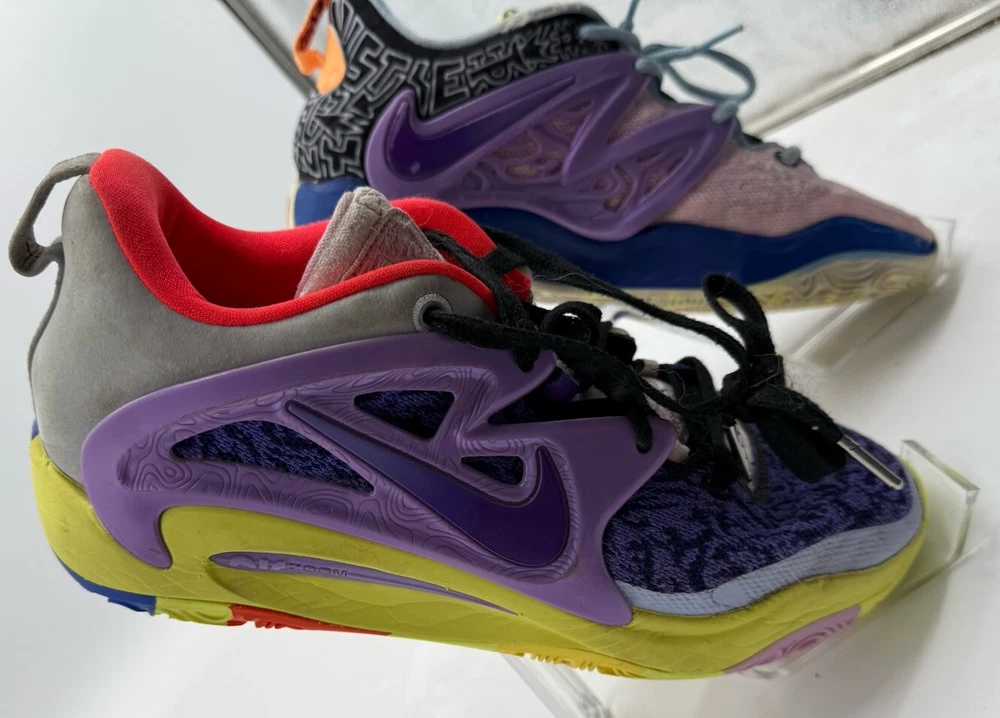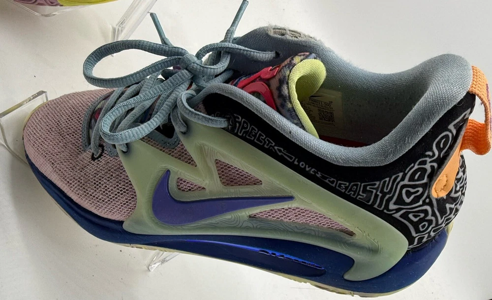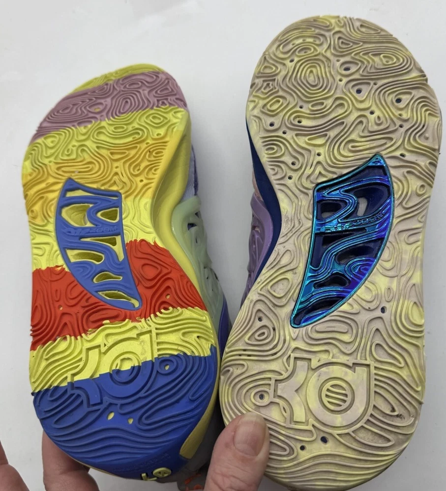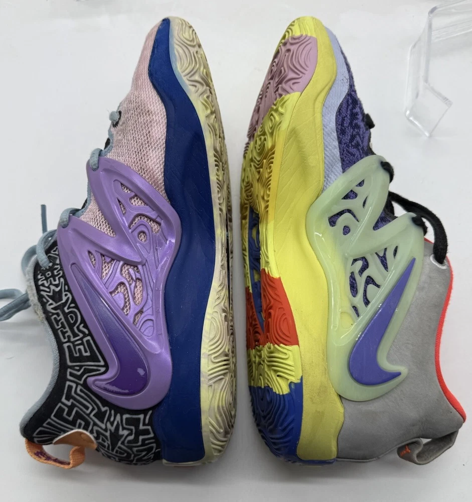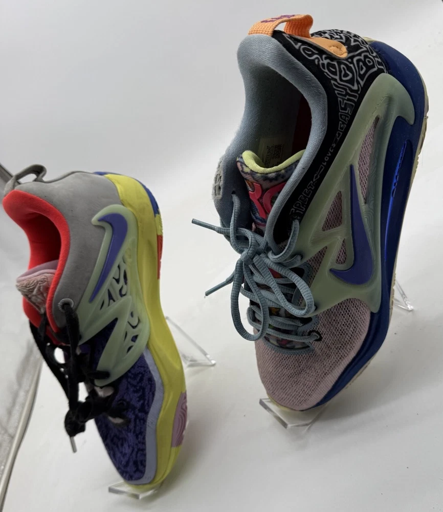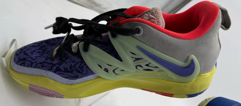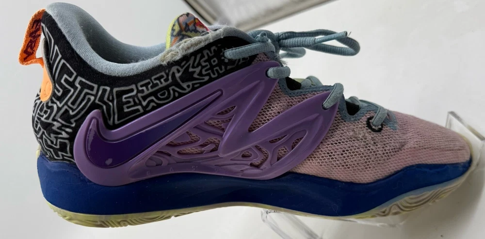 Elevate your basketball game with these Nike KD 15 men's basketball shoes in size 9M. Designed with performance in mind, these sneakers feature a multicolor design and lace-up closure for a secure fit on the court. With a comfortable M shoe width, these athletic sneakers are perfect for men looking to up their basketball game. The Nike KD 15 model is part of the Nike KD product line and is perfect for basketball players of all levels. Whether you're a casual player or a seasoned pro, these sneakers are sure to give you the edge you need on the court. Don't miss out on the opportunity to own a pair of these high-performance shoes. There’s a tiny bit of where on the right hand side of the left shoe by the tongue see picture.