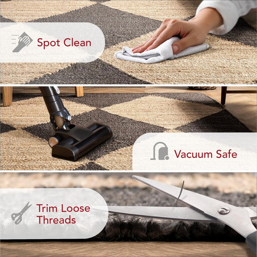 Introducing our versatile nuLOOM Pandora Diamond Jute Area Rug, a stylish jute rug collection where beauty effortlessly meets functionality. Elevate your space with the timeless charm of these meticulously crafted rugs, perfect for any room in your home. Our jute rugs epitomize natural elegance and durability. Made from high-quality materials, these area rugs boast superior craftsmanship, making them ideal for high-traffic areas like living rooms, dining rooms, bedrooms, offices, nursery rooms, and hallways. Whether you're looking for a large rug or a small rug to anchor your space, or a neutral area rug to complement your decor, our rug collection has you covered. Infuse a boho vibe with our intricately woven designs and braided jute rugs. The neutral hues of our jute rugs effortlessly blend with any color scheme. This 2x8 jute area rug is perfect for both your indoor and outdoor spaces. Enhance your dining room ambiance with our specially designed dining room rugs, made to withstand the rigors of everyday use while adding a cozy, inviting feel to your gatherings. Our eco-friendly outdoor rugs offer durability and weather resistance, making them perfect for patios, porches, and decks. Choose from a variety of shapes and sizes, including round jute rugs, oval rugs, and scalloped jute rugs, to suit your specific needs. Embrace the natural beauty of our handmade jute rugs. These highly durable rugs are not only pet-friendly and kid-friendly but also easy to clean. Transform any room with our selection of soft jute rugs, perfect for bedrooms and living areas. Whether you're decorating your office, bedroom, or entryway, our versatile rugs offer the perfect blend of style and functionality. Experience the luxury of eco-conscious living with our ethically sourced and sustainably made eco-friendly jute rugs. Shop our collection today and discover the timeless elegance and versatility of our jute rug collection. Natural Materials: Our area rug is handmade from 95% Jute, 5% Cotton and expertly made in India with quality craftsmanship. Due to the handmade nature of this rug, there may be slight variations in color and size making this rug unique to your home. Recommended Rooms: Add warmth and texture to your living room, dining room, bedroom, kitchen, or hallway with this stunning 2x8 area rug. This rug's organic natural look will be a timeless decor piece that creates a boho or farmhouse feel. Enduring Natural Style: Combining the rustic appeal of a farmhouse rug with a modern twist, our jute area rugs go with any of your existing decor. Jute rugs are perfect for adding texture and giving your home a warm cozy feel for years to come. Durable and Sustainable Quality: Our jute rugs are handmade with plant based sustainable materials, making them durable and hard-wearing that will hold up in busy areas such as living rooms, and hallways while being environmentally friendly. Sleek & Versatile Pile Height: The medium pile of this area contributes to its versatility, making it suitable for various rooms in your home. This rug adds the perfect amount of texture and thickness, while remaining easy to clean and maintain. Versatile Size: This area rug measures 2x8 feet, making this rug the ideal choice for various room sizes and layouts. This rug makes the perfect centerpiece for your living room, bedroom, or dining room that could use an elevated touch. Kid and Pet-Friendly Rug: This jute area rug is built to last in high traffic areas of your home. With its handmade nature, this rug was crafted to withstand everyday foot traffic from kids to pets while adding style and comfort to your space. Perfect Laying Rug: Jute rugs are a go-to for layering to add depth and character to your living room or dining room. Try pairing your jute rug underneath a bold boho rug or pair two jute area rugs for an extra-textured look. The options are endless! Rug Care: Vacuum your area rug a few times a week on the lowest setting and spot clean with mild detergent. Sprouting and debris are common due to being made from plant fibers, trim any loose threads with scissors and regularly clean under your rug. Enhance with a Rug Pad: For added comfort and to extend the life of your rug, we recommend pairing it with one of our high-quality rug pads. It not only enhances the overall experience but also protects your flooring underneath.