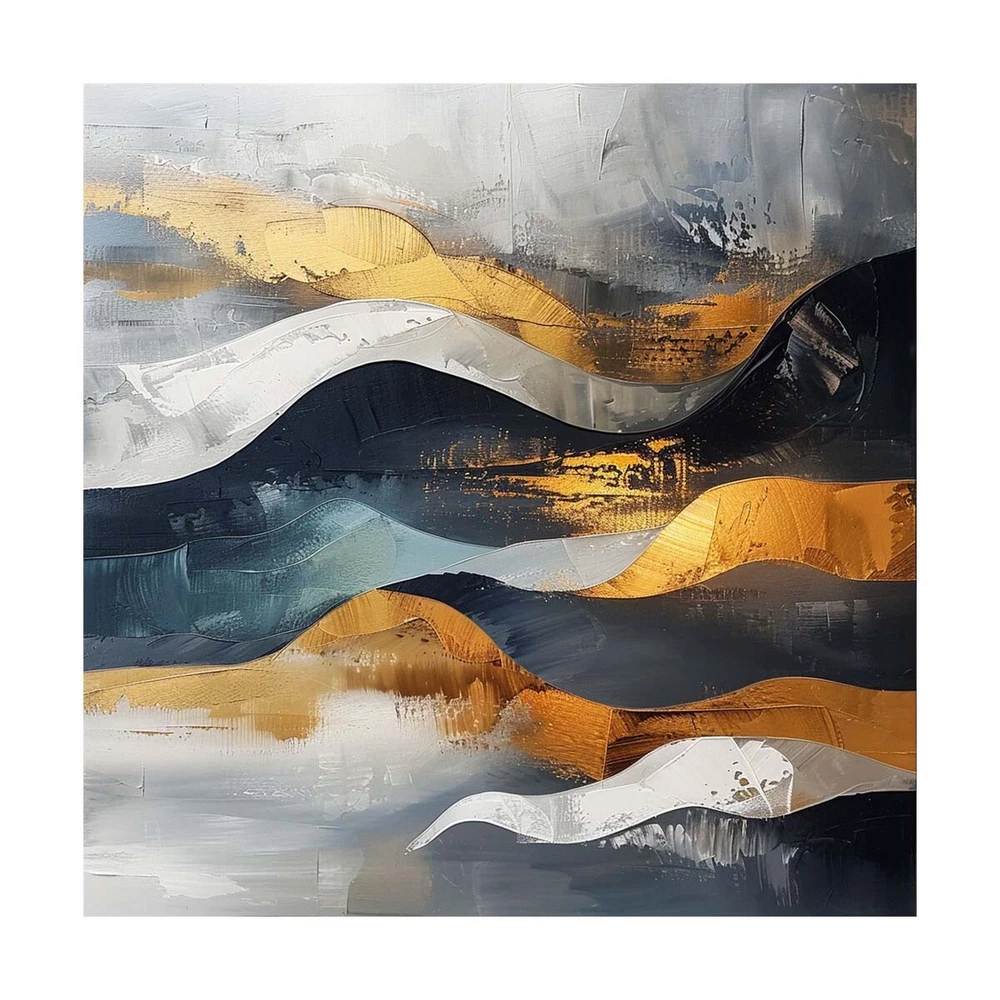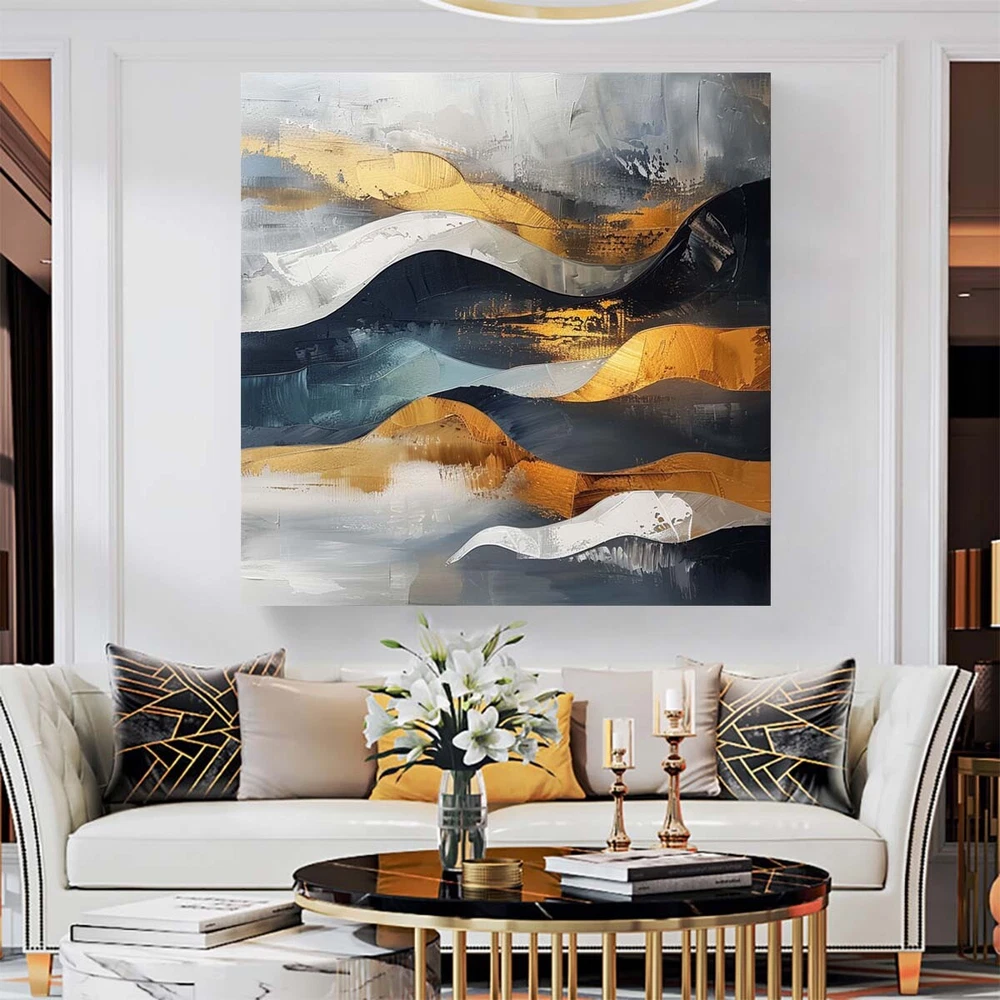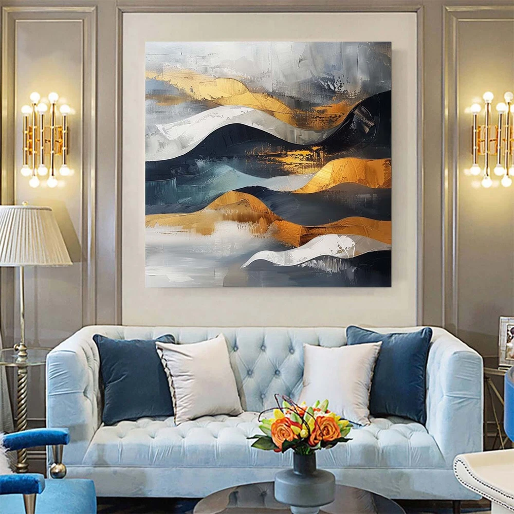 oil painting Abstract on canvas Modern wall decor Blue and Golden Hand-painted