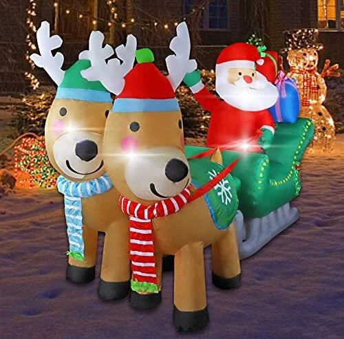on Sleigh Pulled by Two Reindeers with 6.7 FT Christmas Inflatable Santa Claus