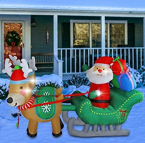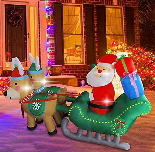 30 Days Return Policy Fast Delivery Trusted seller 6.7 FT Christmas Inflatable Santa Claus on Sleigh Pulled by Two Reindeers with Gift Boxes, Blow up Lighted Xmas Yard Decor with LED Lights for Christmas Outdoor Decorations Product Description Innovation Design - The perfect Christmas Inflatable decoration size is 2.5x6.7x4 FT (WxLxH). The cute design and colorful of our Christmas yard prop make your garden full of Christmas atmosp. Eye-Catching LED Lights - Blow Up Prop with LED lights for is equipped with built-in LED lights. The Santa Claus with Reindeers is likely to be a focal point of your community. Special Material - Christmas inflatable reindeer are made of polyester fabric. It is well sewed, lightweight and durable, weatherproof and fades resistant. Just only plug into an outlet and one minute, you'll easy get a cute glowing Christmas inflatable decorations. Easy Set up & Store - When set up, plug into the power supply, the built-in fan will work perfectly to give you a realistic santa claus image in a minute. If you don't use it, just let the air out and fold it, it won't take up much of your precious home! Wide Application - Christmas Decorations can be applied to decorate your lawn, garden, yard, patio, etc. The design is unique, eye-catching, which can give people funny the warm atmosp appeal to customers, so it can work perfectly to be put at the entrance of shopping malls, restaurants, amusement parks and so on. Shipping Returns Payment Shipping Shipping is FREE to all addresses other than APO/PO boxes in the lower 48 states. All our stock ships from US-based warehouses. Shipped via USPS or UPS (depending on location and package weight) Unless stated otherwise, all orders will ship within 24-72 hours of your payment being processed. Check our feedback to see the great reviews of FAST shipping we offer. Returns As our valued customer, we will do our best to make sure the product you receive arrives to you on time and as expected. If you are not satisfied with your purchase, please contact us within 30 days of receiving your order to process a return. Payment We currently accept payment via eBay managed payments only. Once payment is cleared, we will dispatch your shipment within 1-3 business days. Please refer to the "Shipping" tab for more information regarding shipping speed to your destination.