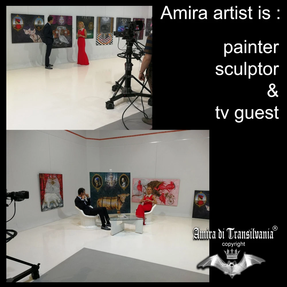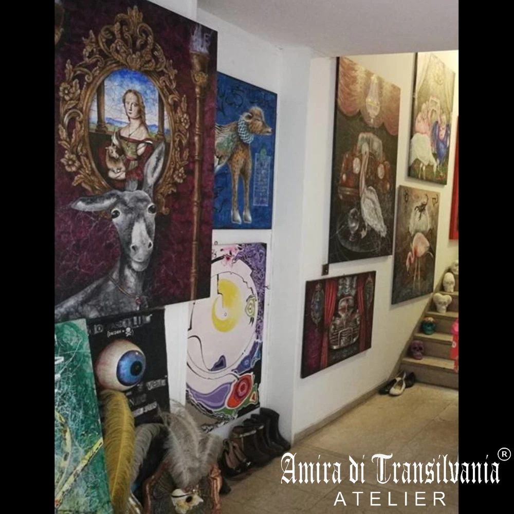 optical painting lady with hermine portrait pop art figurative abstract realism Lady with an Ermine Pop art - screen printing on canvas, size 40 x 60 cm. (no frame) Signed and certified. Limited edition. International art exhibition. Collection of artists. They all have an artist's archive number. Many of these works have been exhibited in various exhibitions, included in various official catalogs and sold at auction. The Artist has decided to sell some multiple works of his collection to give physical space a new creative period and become part of the new collections. See other works on the artist's blog AMIRA DI TRANSILVANIA WHO IS THE ARTIST? Amira Munteanu Bergmann is an Italian artist born in Transylvania from a family of Austro-Hungarian Jewish intellectuals belonging to the Order of the Dragon. She was the first artist to have a personal art exhibition in the Ceausescu Palace after the fall of the communist regime. She started studying Medicine, then Dramatic Arts and lastly Painting and Sculpture in Venice. She worked as a model and a stylist as well as an image consultant. She also works as a theater actress and film producer, screenwriter, blogger and television personality. She was initiated by Ivan Mosca to the Solomonic Order (in 2001), then to the Order of the Golden Dawn (2013) and to other Hermetic Orders (to which she still belongs today). She has been painting since she was 4 years old. Her works of art are in more than 200 public and private art collections around the world, in museums and art catalogs (You can send a message to receive more information). Her latest artist quotation for the original works is 4,000 euros for a work of approximately 100 x 100 cm. Amira has decided to give the general public the opportunity to own one of her signed and certified works, with an archive number and in a limited edition. You will receive the screen printing on canvas (unframed to avoid damage during transport), together with the certificate of authenticity with your name and the archive number of the authentic work (with a market value 3 times higher than the selling price in this edition ). Follow this artist in all social media: page ''AMIRA ARTE'' artista.