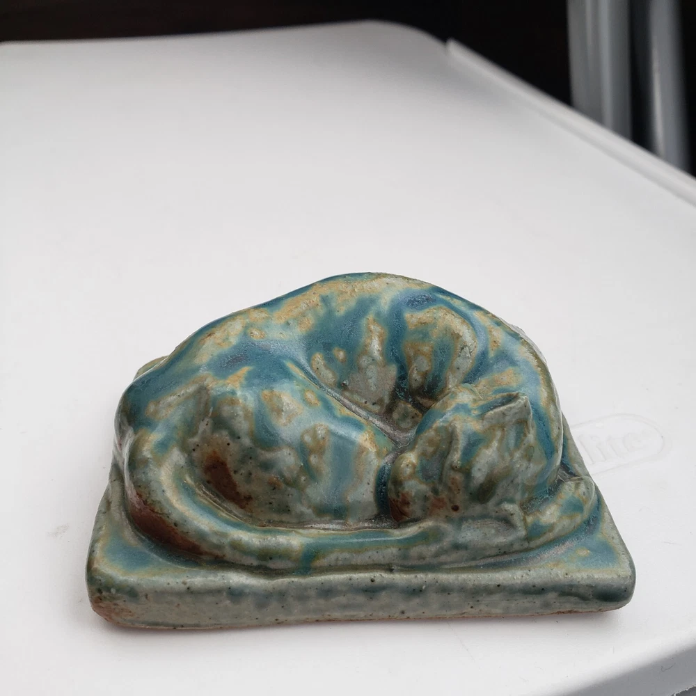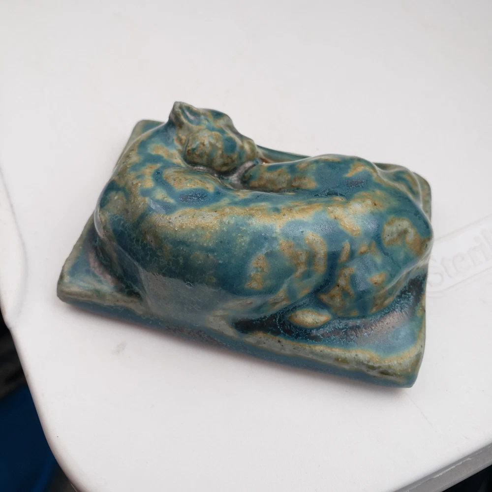 Beautiful paperweight tile . In good condition. Measures app. 2 1/2" x 3 1/2 " plus. Thank you and good luck.