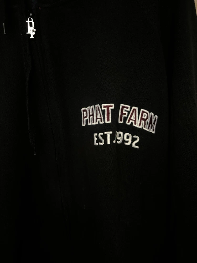 This Phat Farm hoodie is the perfect addition to any streetwear lover's wardrobe. With a full zip closure and hood, this black hoodie is both stylish and practical. The fleece fabric type ensures warmth and comfort, while the hip hop theme adds a touch of personality. The hoodie features pockets for added convenience, making it perfect for everyday wear or for carrying essentials. The size type is regular, and the department is men's. This hoodie is a must-have for any man looking to add a touch of style to their wardrobe. We have size Large to 3XL if any questions please call 213)746-4500 or visit us in store at 1031 S. Los Angeles St. Los Angeles, CA 90015.