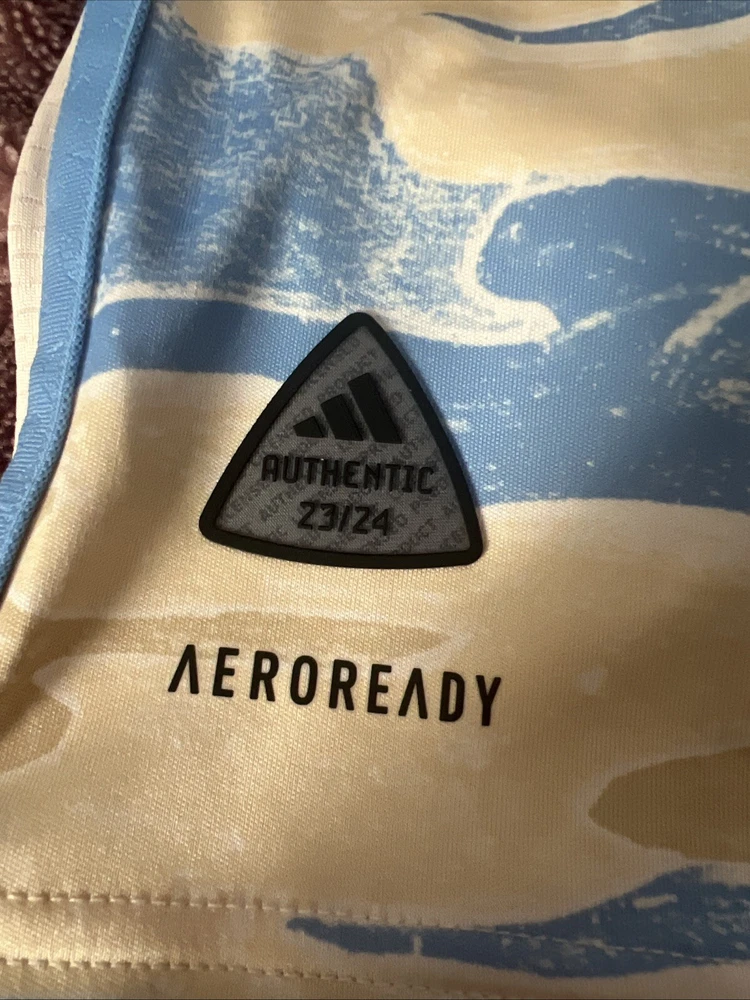 Show your support for the Philadelphia Union with this authentic jersey for the 2023/2024 season. Made by adidas, this jersey features the team's name and logo on the front, as well as the player's name and number on the back. The jersey comes in a size medium and is designed for men. The jersey's design is inspired by the team's colors and features a multi-color palette. It is perfect for soccer fans who want to show their support for their favorite team. Whether you are watching the game from the stands or from home, this jersey is a must-have for any fan of the Philadelphia Union.