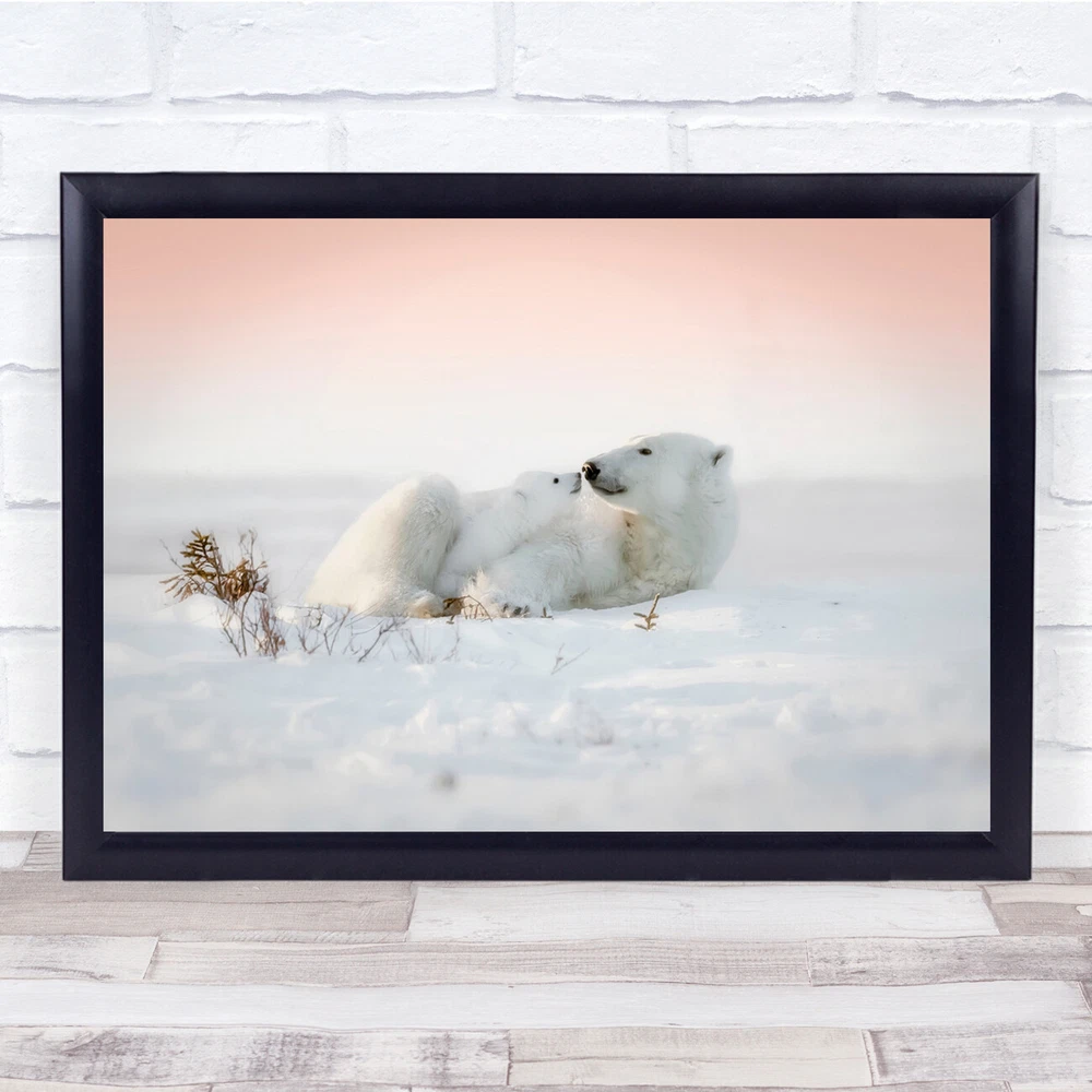 polar bear and cub nose touch sunset nature animals Wall Art Print