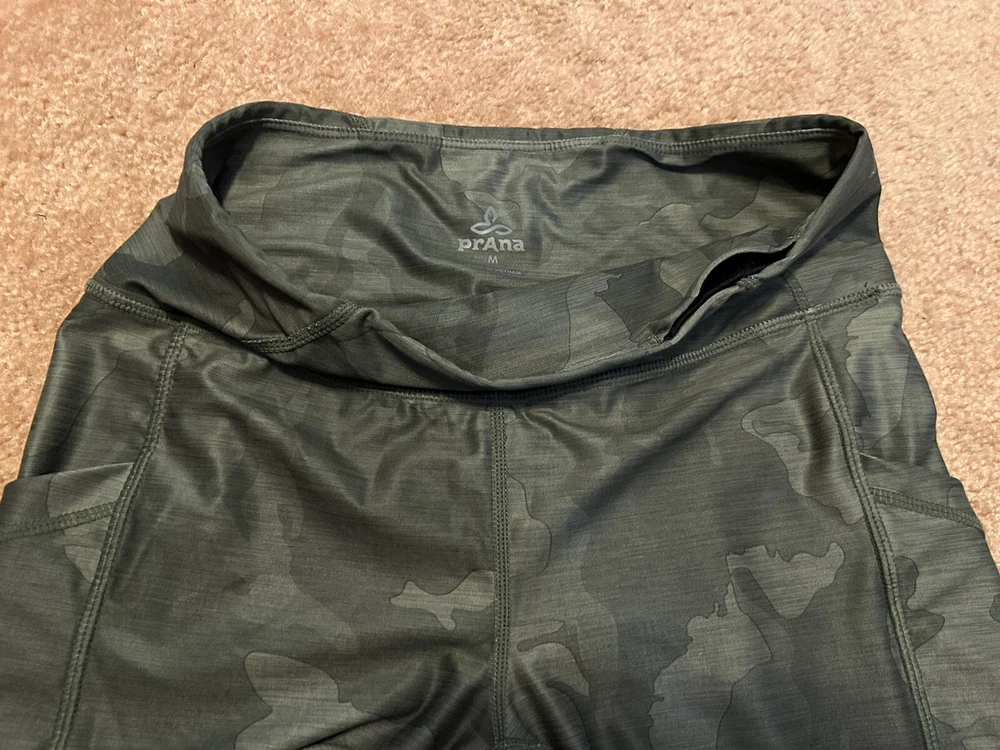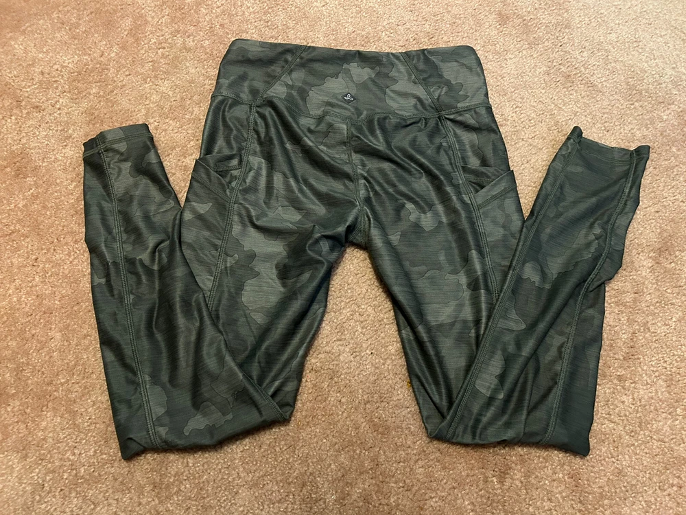 Elevate your activewear collection with these stylish prAna Electa II leggings. Made from recycled material, these leggings feature a camouflage pattern in shades of green. The pull-on closure and slim fit offer a comfortable and flattering look, while the compression area on the leg provides extra support during yoga or other activities. With a waist size of 28 inches and an inseam of 27 inches, these leggings are a regular fit and suitable for women of all sizes. The Electa II leggings also come with handy pockets, making it easy to carry your essentials while you workout. Perfect for winter, summer, or spring, these leggings are lightweight, breathable, and machine washable. Whether you're hitting the gym or doing some yoga at home, the prAna Electa II leggings will keep you comfortable and stylish.