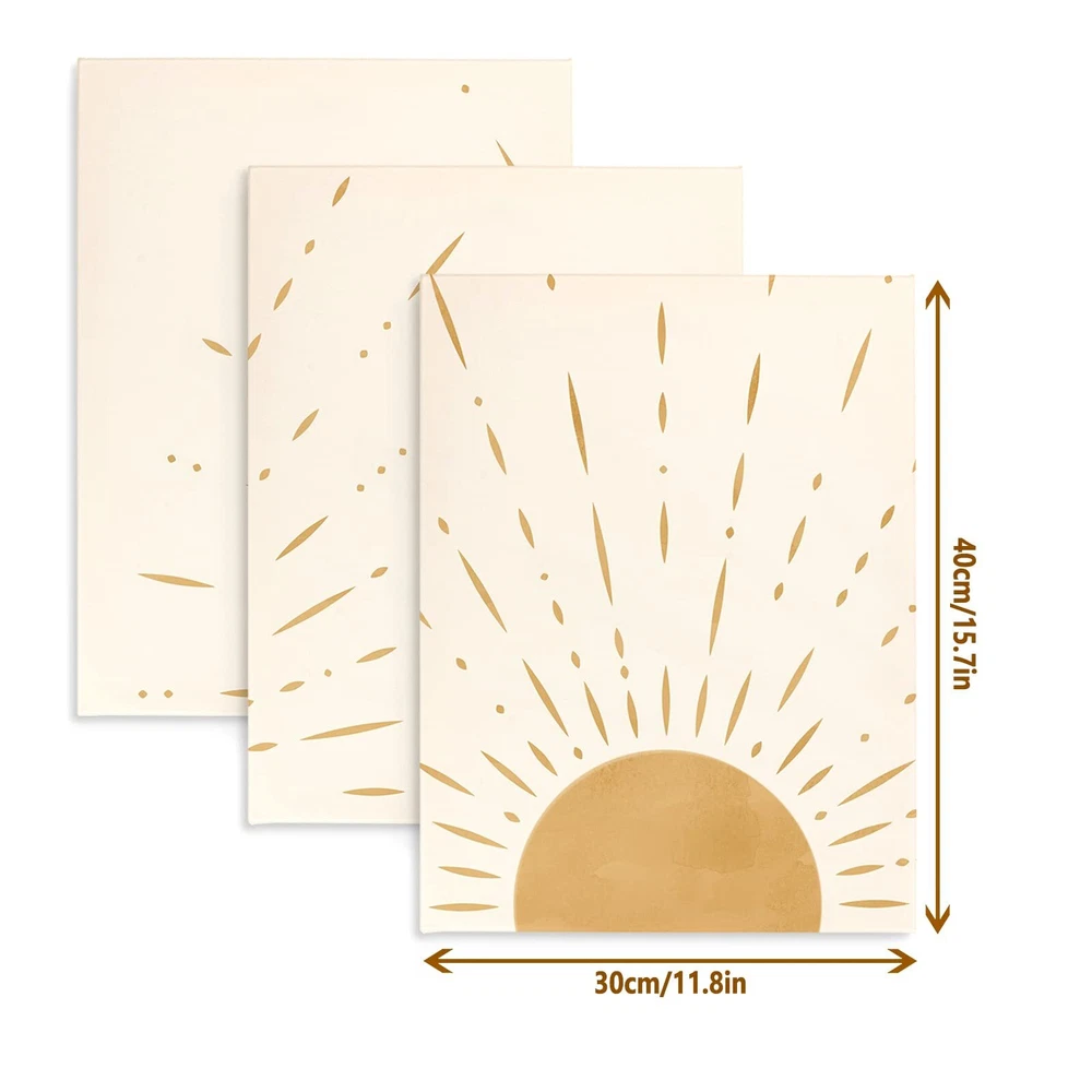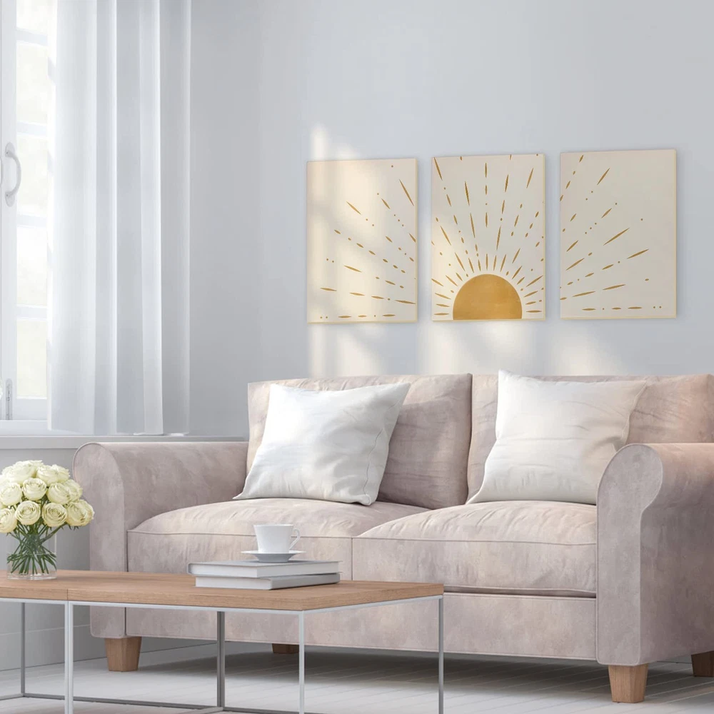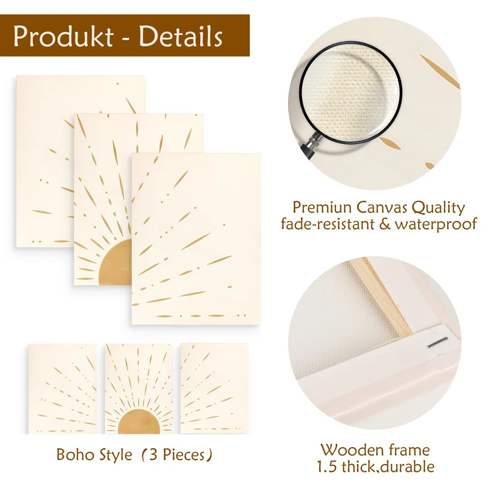 Premium Quality: Our minimalist wall art set of 3 is printed on high-quality canvas with fade-resistant ink, ensuring long-lasting durability and beauty. Each canvas is 12"x16" (30cmx40cm) and comes ready to hang with solid wooden frames, gallery wrapped and complete with hooks and accessories. Modern Boho Style: Featuring a beautiful design of the sun rising on the horizon, our modern boho wall decor combines abstract art and the Bohemian style for a unique and elegant touch to any space. It can easily brighten up your room and give it a warm and welcoming atmosphere. Versatile Wall Decor: Perfect for any room in your home, our boho bedroom wall decor can be hung on the wall as a set or separately to create a unique and personalized theme. It's perfect for bedroom, kitchen, living room, bathroom, office, porch, corridor, dorm wall decor, and more. Easy to Match: The neutral beige color of our boho room decor makes it easy to mix and match with most home decor styles, such as Bohemian, mid-century modern, or minimalist decor. It's perfect for housewarming parties or gallery decoration. Great Gift Idea: Our modern art prints are the perfect gift for your friends, relatives, or colleagues who love Bohemian, mid-century modern, or minimalist themes. This wall art set can be a great gift for housewarming, birthday, Hanukkah, Christmas, Thanksgiving, and other occasions.