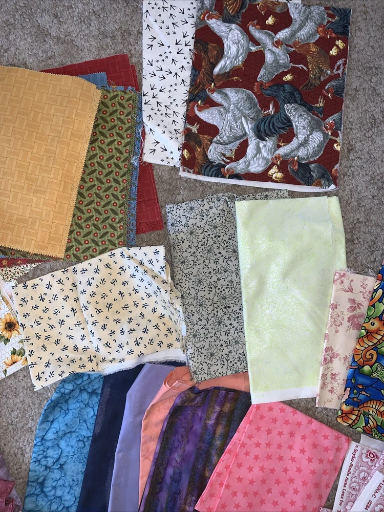 This lot of fabric scraps is perfect for any quilting project. Made of 100% cotton, these pieces are soft and durable, making them ideal for creating unique and beautiful quilts. The lot includes a variety of colors and patterns, suitable for any theme or style. Whether you are a seasoned quilter or just starting out, this lot is a great addition to your collection. With a range of lengths and amounts, you will have plenty of fabric to work with. Don't miss out on this opportunity to add some special touch to your next project.