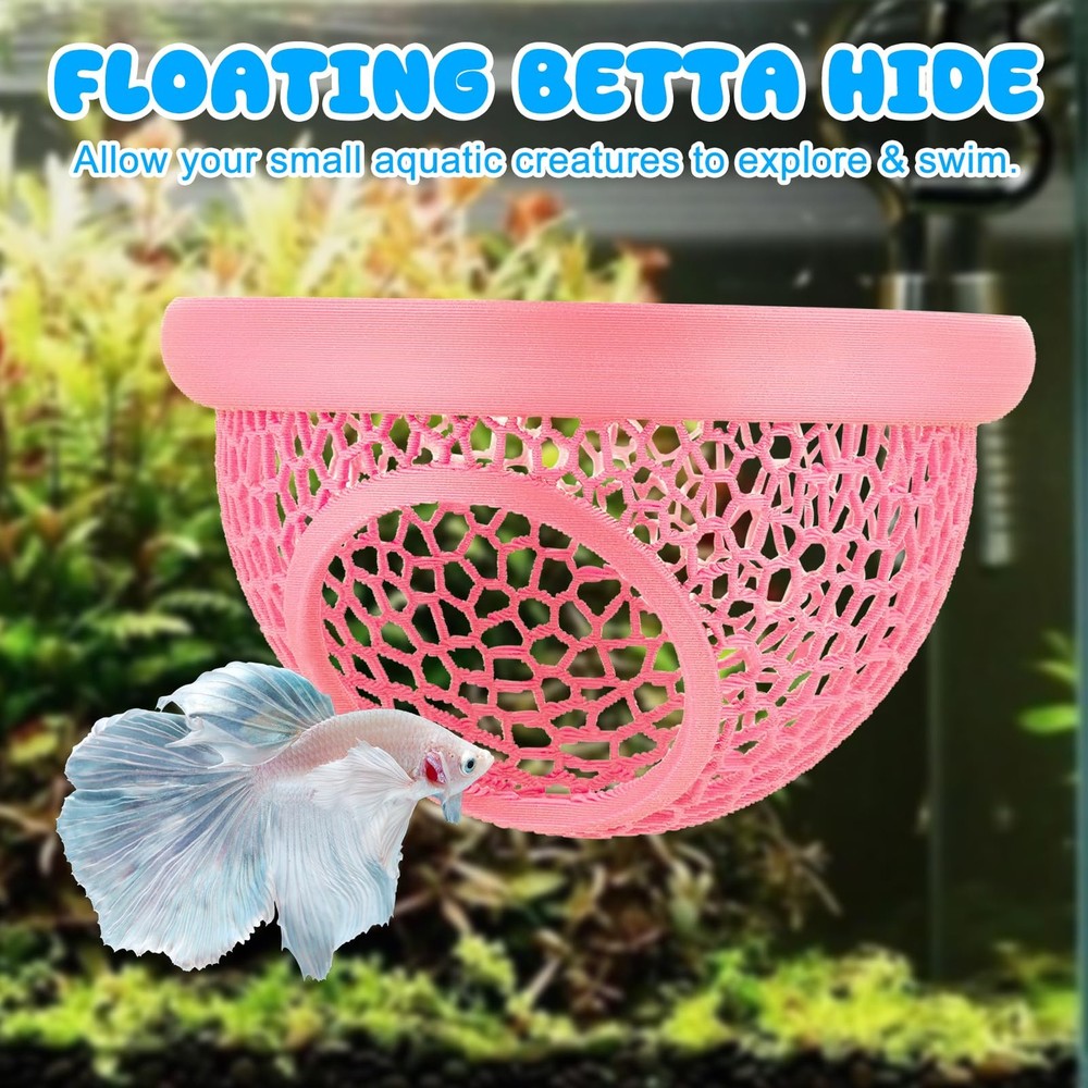 sicutoz Pink Floating Betta Hide & Shrimp Cave – 3D Printed Aquarium Description Features: 3-in-1 Aquarium Design – Combines a floating cave, relaxing hammock, and built-in feeding ring—perfect for Bettas, shrimp, and small fish like Corydoras. (U.S. Patent Pending) Eco-Safe Pink PLA Material – Made from non-toxic, aquarium-safe 3D-printed PLA that won’t harm fish, shrimp, or water quality. Vibrant pink color adds a pop of fun! Reduces Stress & Encourages Natural Behavior – Gives Bettas a safe surface spot to rest, hide, and build bubble nests—just like in their natural habitat. Built-In Feeding Ring for Cleaner Tanks – Keeps floating food in one place, reduces waste, and makes feeding time easy and mess-free. Perfect Fit for Small Tanks – Compact size (2.68" L x 2.68" W x 1.38" H) with a 3cm entrance—ideal for nano tanks, Betta bowls, and shrimp colonies. Product Details: Handling We will ship all orders within 3 business day of payment. Delivery We Do Not Ship Outside of the Continental US. Return Policy All items qualify for returns within 30 days of receipt. Buyer is responsible for return shipping on any item that is not damaged. Feedback We take our reputation seriously, we buy and sell online, so we understand the value of trust. If you are unsatisfied with your order, please contact us and we will work with you to resolve it to your satisfaction.