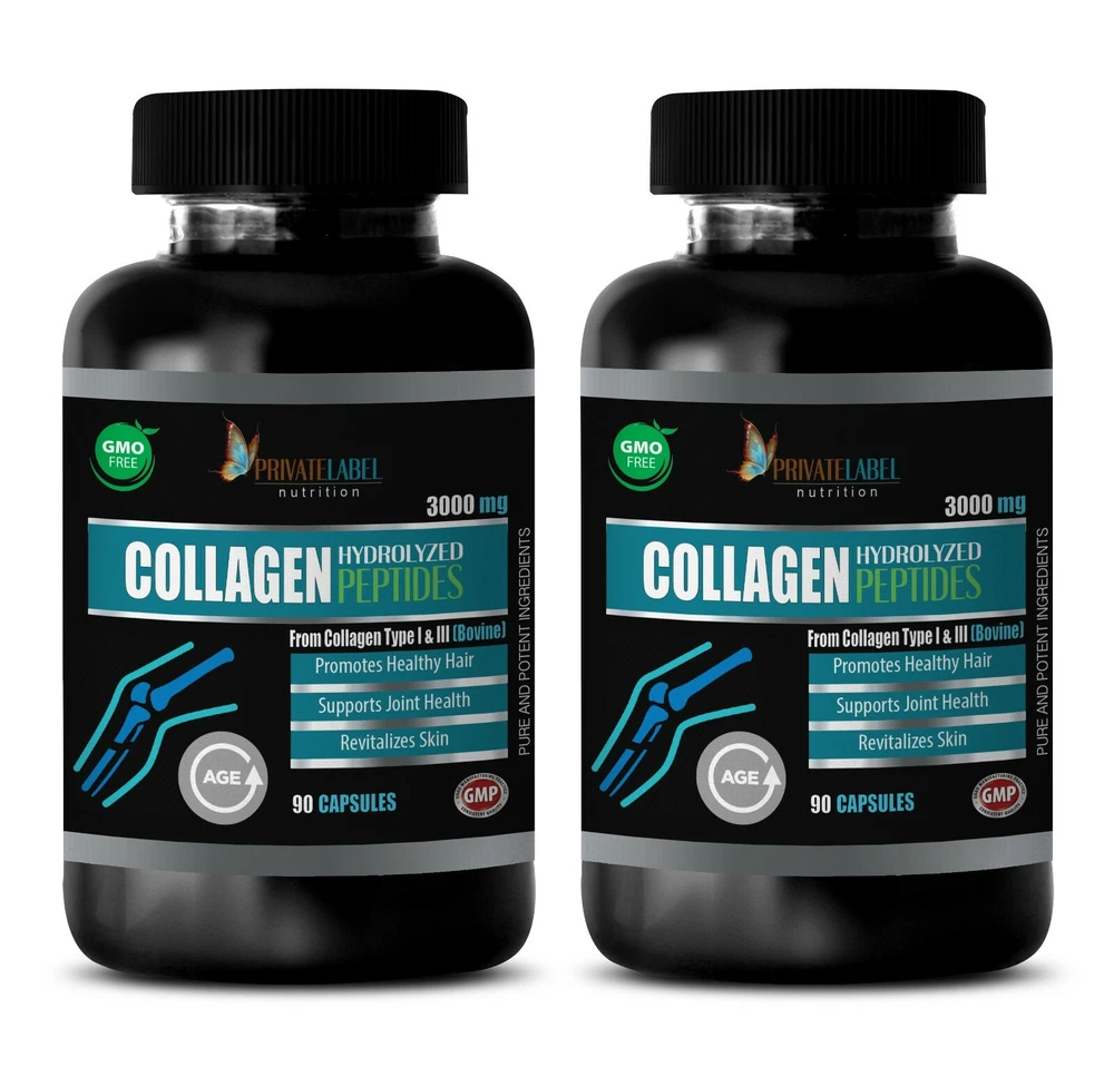 skin collagen beauty booster - COLLAGEN PEPTIDES - anti aging regenerative 2 BOTTLE COLLAGEN PEPTIDES SUPPORTS BEAUTIFUL LUSH HAIR CAN MAKE YOU LOOK YOUNGER SUPPORTS SKIN ELASTICITY CAN SUPPORT JOINT INTEGRITY CAN SLOW BONE DEGENERATION CAN IMPROVE MUSCLE MASS MAY IMPROVE HEART HEALTH MARKERS 2 BOTTLE = 180 CAPSULES COLLAGEN PEPTIDES: Collagen is a structural protein that plays a role in building hair, skin, bones, and cartilage. Collagen production in the body declines with age, which means you have to supplement with collagen to maintain the same levels as you had in your youth. When it comes to collagen supplements, you’ll find there are different types of collagen that play different roles in your body. COLLAGEN PEPTIDES SUPPORTS BEAUTIFUL LUSH HAIR: Collagen types 1 and 3 help make up the structural protein of your hair, and research shows collagen can thicken up thinning hair and reduce hair loss. In a 3-month study, women experiencing thinning hair and shedding a daily marine protein supplement, which is a potent source of collagen. After 90 days of supplementation, the women who took the marine protein supplement had less shedding and thicker hair compared to a placebo group, suggesting that collagen strengthened, weakened hair. COLLAGEN PEPTIDES CAN MAKE YOU LOOK YOUNGER: The body’s natural production of collagen reduces with age, which means collagen levels are continually declining as you get older. Collagen types 1 and 3 act as the structural protein that keeps your skin strong and firm. Studies show that collagen is responsible for the skin’s elasticity and moisture retention. Elasticity is the ability of the skin to return to its original position after being stretched. As elasticity declines, wrinkles and fine lines tend to appear. However, oral supplementation with collagen is shown to improve the skin’s elasticity. COLLAGEN PEPTIDES SUPPORTS SKIN ELASTICITY: Collagen is a major component of your skin. It plays a role in strengthening skin, plus may benefit elasticity and hydration. As you age, your body produces less collagen, leading to dry skin and the formation of wrinkles. However, several studies have shown that collagen peptides or supplements containing collagen may help slow the aging of your skin by reducing wrinkles and dryness. COLLAGEN PEPTIDES CAN SUPPORT JOINT INTEGRITY: Collagen helps maintain the integrity of your cartilage, which is the rubber-like tissue that protects your joints. As the amount of collagen in your body decreases as you get older, your risk of developing degenerative joint disorders such as osteoarthritis increases. Some studies have shown that taking collagen supplements may help improve symptoms of osteoarthritis and reduce joint pain overall. COLLAGEN PEPTIDES CAN SLOW BONE DEGENERATION: Your bones are made mostly of collagen, which gives them structure and helps keep them strong. As collagen in your body deteriorates as you age, bone mass does too. This may lead to conditions such as osteoporosis, which is characterized by low bone density and linked with a higher risk of bone fractures. Studies have shown that taking collagen supplements may have certain effects in the body that help inhibit the bone breakdown that leads to brittle bone conditions. COLLAGEN PEPTIDES CAN IMPROVE MUSCLE MASS: Between 1–10% of muscle tissue is composed of collagen. This protein is necessary to keep your muscles strong and functioning properly. Studies suggest that collagen supplements help boost muscle mass in people with sarcopenia, the loss of muscle mass that happens with age. In one study, 27 frail men took 15 grams of collagen while participating in an exercise program daily for 12 weeks. Compared to men who exercised but did not take collagen, they gained significantly more muscle mass and strength. COLLAGEN PEPTIDES MAY IMPROVE HEART HEALTH MARKERS: Collagen provides structure to your arteries, the blood vessels that carry blood from your heart to the rest of your body. Without enough collagen, arteries may become weak and fragile. In one study, 31 healthy adults took 16 grams of collagen daily for six months. By the end, they had experienced a significant reduction in measures of artery stiffness compared to before they started taking the supplement. Additionally, they increased their levels of “good” HDL cholesterol by an average of 6%. CAUTION: Do not exceed recommended dose. Pregnant or nursing mothers, children under the age of 18, and individuals with a known medical condition should consult a physician before using this or any dietary supplement. These statements have not been evaluated by the Food and Drug Administration. This product is not intended to diagnose, treat, cure, or prevent any disease. GREAT QUALITY PRODUCT