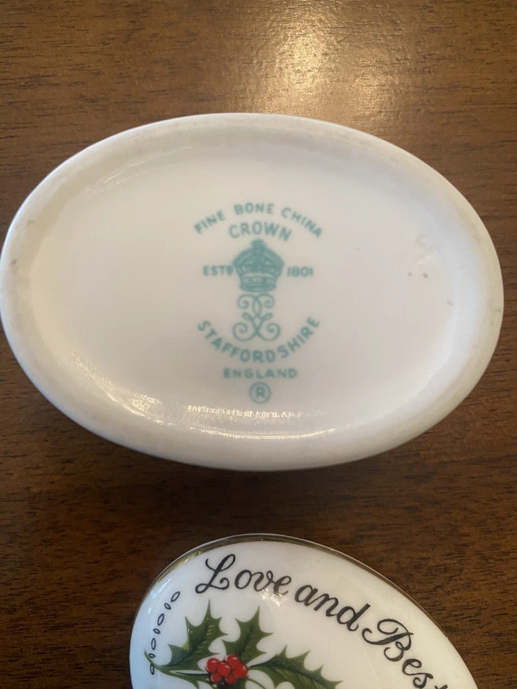 Staffordshire England fine bone china Christmas gift trinket box. Like no. No chips or scratches.