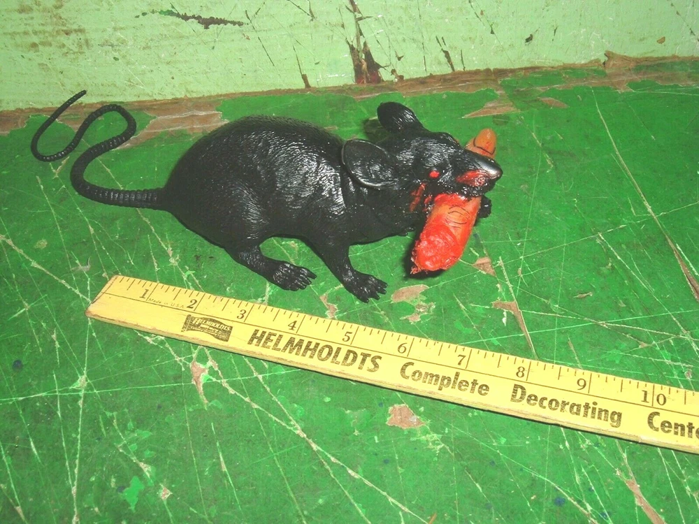 stupid funny prank rubber rat with bloody finger in mouth / party item gag gift
