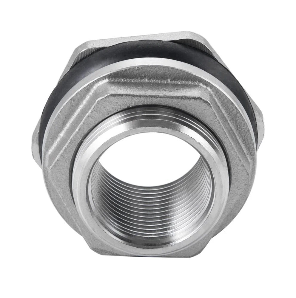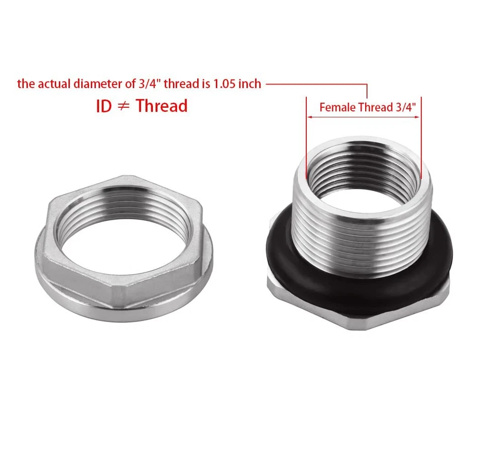 The partition parts are forged and cast from solid stainless steel, which is corrosion-resistant, rust-proof and has a long service life. The size is 3/4" female thread NPT connector. Stainless steel partition joints are commonly used in water tanks, water towers, water inlets and outlets, self-made water storage buckets, rain buckets, and can also be used for various pipes, hoses, pipe fittings or faucets. Size:3/4" NPT female threaded,the actual diameter of 3/4" thread is 1.05 inch,NPT thread size is not the actual diameter, it is only nominal pipe size. Bulkhead fitting are made of stainless steel, which is corrosion-resistant, rust-proof and has a long service life. Note:The lock nut is Left-hand thread,and the external thread is used for the lock nut and cannot be connected to the pipe. Wide range of uses: commonly used in water tanks, water towers, water inlets and outlets, self-made water storage buckets, rain buckets, and can also be used in various pipes, hoses, pipe fittings or faucets. Bulkhead OD 31mm, suitable for about 31.5mm ID hole
