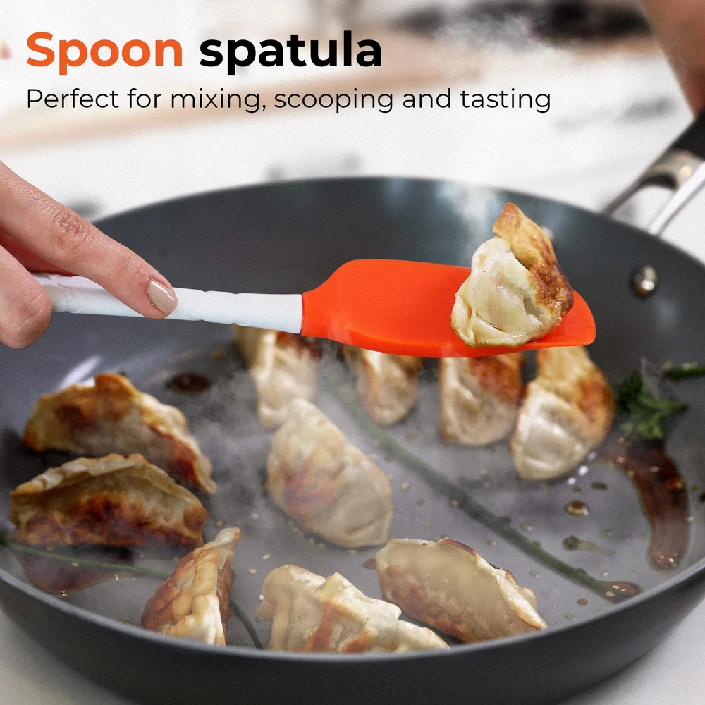 Picture this: The simple task of cooking an egg. You have your new, shiny non-stick pan with a little oil; you break the egg and listen to that lovely sizzle. But then, PANIC! Your nylon spatula has been sat on the side of too many pans and now the handle has started to melt and fall off. Even worse, the edges are so deformed by the heat that they stick to anything, making it impossible to even separate a couple of frying eggs, or flip a pancake. You turn to your old wooden spatula, but when it comes out of the dishwasher you see that it has a horrible coating and feels slimy to the touch. The solution? The Silicone Spatulas, of course! ✔they don’t stick, melt or deform in the heat. ✔they are BPA free, safe to use on non-stick pans. ✔they don’t stain or retain odors. ✔they won't discolor, warp or chip. ✔they are also dishwasher safe. These kitchen gadgets are carefully designed and created to make every kitchen professional, yet fun and fashionably colorful. The highly versatile spatulas can be used as a scraper spatula, icing spatula, baking spatula, jar spatula, and even as a mixing spoon. Looking at the above scenario and qualities of the Silicone Spatula Set, there is no doubt you will get your money's worth when you consider purchasing your spatulas set for use in your kitchen. To see just how much these kitchen utensils could make your life easier and your kitchen more colorful, ORDER YOURS NOW! And why not add these great baking supplies to your gift or wedding registry?As a bakeware set it would always make for the perfect gift! offers 100% RISK FREE No-Questions Asked Lifetime Free Replacement for your new set of heat resistant Silicone Spatulas! HEAT RESISTANT - Turn up the heat in your kitchen! This rubber spatula set can withstand up to 480 degrees Fahrenheit. No melting, no warping, no worries! SMOOTH BLADES - The bendable heads on our silicone kitchen utensils are gentle on cookware, leaving them unmarked and unscratched. Perfect for precise designs when frosting cake or scraping out the nooks of a peanut butter jar. COMFORTABLE GRIP - The easy to hold handles have a long and narrow neck for better maneuvering. This kitchen spatula set provides a textured grip that prevents slippage when wet. LIGHTWEIGHT & STRONG - These ergonomically designed spatulas for nonstick cookware are high quality, lightweight, and sturdy for flipping pancakes, making scrambled eggs, cleaning out a mayonnaise jar, mixing dough or cookie batter. VARIETY PACK - Our silicone cooking utensils set includes a large and small spatula, a spoonula, and a jar scraper. Versatile enough for use in frying pans, mixing bowls, sauce pots, cans, bottles, and more.