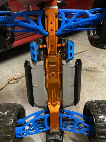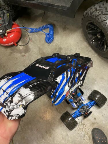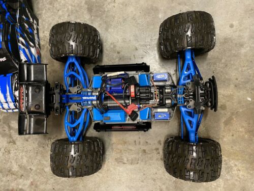 traxxas e revo 2.0 upgraded everything stock motor and stock gear what you see is what you get truck and controller only will need your own battery’s thanks if you have any questions let me know has normal wear and tear from 3 times of use aluminum does have some scratches from normal wear…used it 3 times
