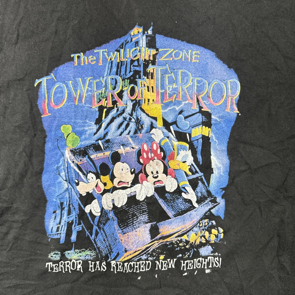 Get ready to show off your love for all things Twilight with this black Gildan T-shirt featuring the iconic Tower of Terror ride from Disneyworld. Perfect for any fan of the franchise, this shirt is made with regular sizing and is available for men in size 2XL. The shirt is crafted with high-quality materials and features a striking graphic of the Tower of Terror ride, making it a must-have for any Twilight enthusiast.