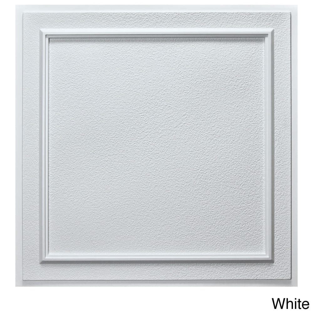 This pack of ten uDecor ceiling tiles is a beautiful enhancement to the ceiling of homes and businesses. These tiles are made of lightweight polyvinyl which makes them waterproof and easy to install.Designed to fit into standard 15/16 inch to 1 inch T-Bar systems or direct mounted to a surface Polyvinyl ceiling tile is 100-percent waterproof and resistant to mold growthWill not warp or break apart over timeLightweight and easy to cut with scissors or straight bladeClass A fire ratedType/style: Terrace ceiling tileMaterials: PolyvinylColor options: Antique bronze, antique nickel, whiteDimensions: 24 inches high x 24 inches wide x 0.03 inches thick Square footage per tile/box: 2 feet x 2 feet (each)Installation: Easy to installPack/case of: Pack of 10 Free Shipping Over $49.99* Details uDecor Terrace 24-inch Ceiling Tiles (Pack of 10) Product Description: This pack of ten uDecor ceiling tiles is a beautiful enhancement to the ceiling of homes and businesses. These tiles are made of lightweight polyvinyl which makes them waterproof and easy to install. Designed to fit into standard 15/16 inch to 1 inch T-Bar systems or direct mounted to a surface Polyvinyl ceiling tile is 100-percent waterproof and resistant to mold growth Will not warp or break apart over time Lightweight and easy to cut with scissors or straight blade Class A fire rated Type/styleTerrace ceiling tile MaterialsPolyvinyl Color optionsAntique bronze, antique nickel, white Dimensions24 inches high x 24 inches wide x 0.03 inches thick Square footage per tile/box2 feet x 2 feet (each) InstallationEasy to install Pack/case ofPack of 10