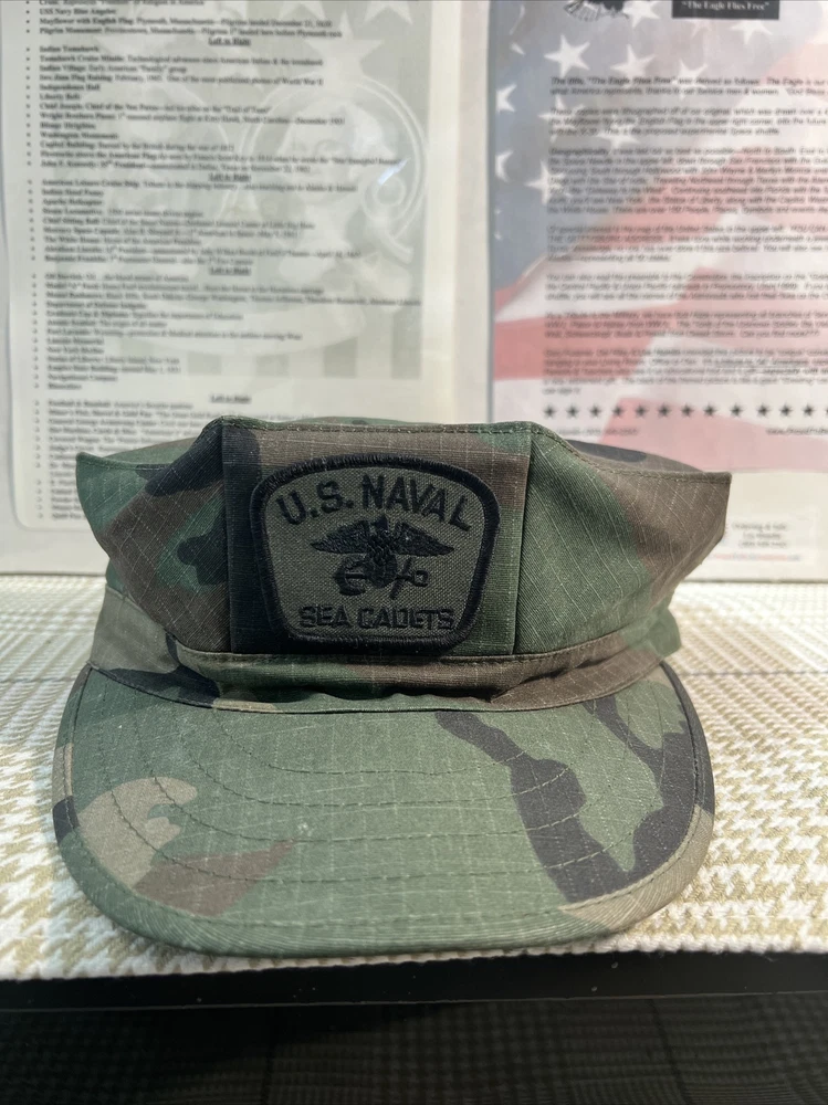 *us. NAVAL SEA CADETS* Green Camouflage Camo Working Utility Navy Cap Hat 7 1/2.