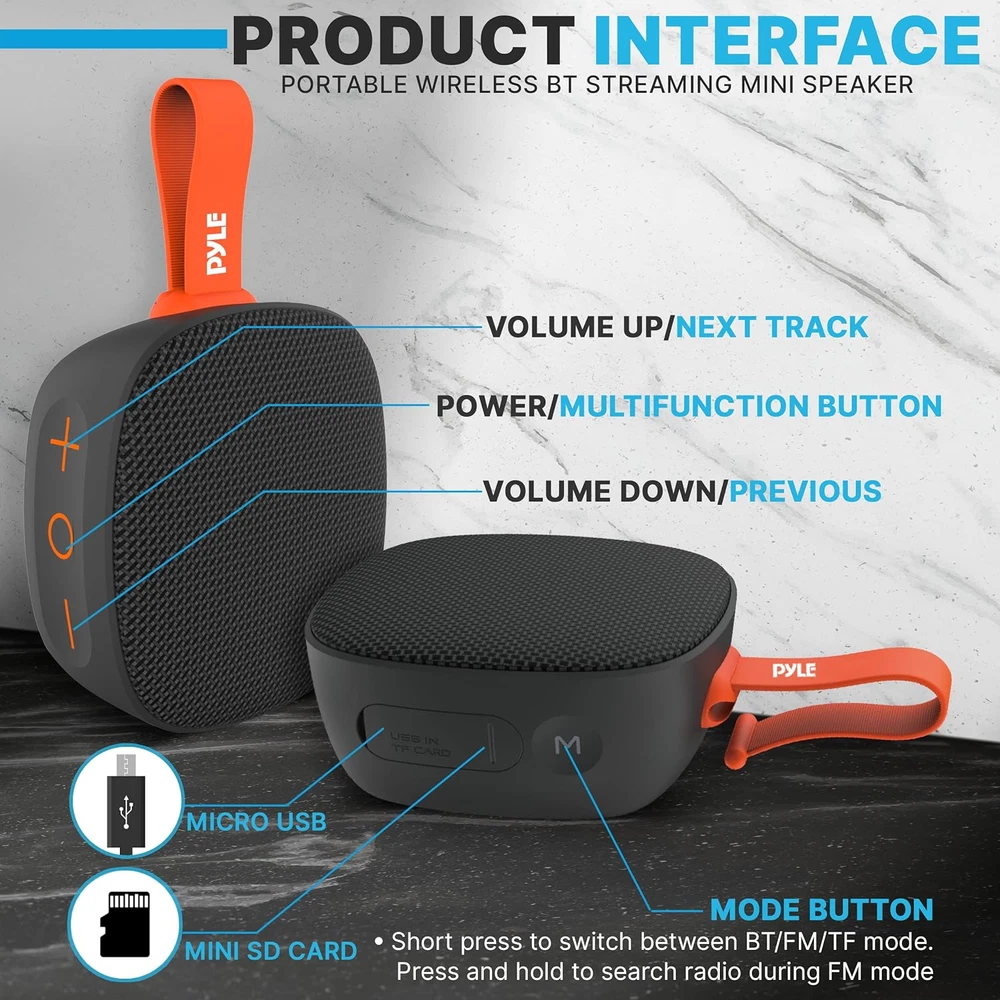 Fast Shipping On All Items 30 Days Money Guarantee Customer Support Excellent Service 100% Satisfaction Satisfaction Guaranteed usa Portable & Durable Bluetooth Mini Loud Speaker - TWS Stereo, Strong Bass, Wireless Streaming,Ipx7 Waterproof,Supports Micro SD/TF/AUX for Office/Home/Outdoor/Sports,Calls Handsfree - PCLSB1BK Specification Item model number PCLSB1BK Style modern Signal-to-Noise Ratio 7E+1 dB Number of Items 1 Power Source Battery Powered Control Method Touch Warranty Type limited warranty or full warranty Compatible Devices All latest Bluetooth Devices, iPhones, Smartphones, Laptops, PC, Tablets Battery Life 5 Hours Woofer Diameter 40 Millimeters Bluetooth Range 10 Meters Controller Type Button Battery Capacity 1.2E+3 Milliamp Hours Connectivity Protocol Bluetooth Wireless Communication Technology Bluetooth, TWS Number of Power Levels 50 Material Acrylonitrile Butadiene Styrene (ABS) Includes MP3 player? No Number of Microphones 1 Input Voltage 5 Volts (DC) Package Type FFP Model Name PCLSB1BK Impedance 4 Ohm Recommended Uses For Product Indoor, Outdoor, Water, Beach, Pool, Shower, Biking, School Briefcase, Hiking, Camping Specific Uses For Product Indoor, Outdoor, Water, Beach, Pool, Shower, Biking, School Briefcase, Hiking, Camping Included Components Bluetooth Mini Speaker, Micro-USB Cable, 3.5mm AUX Cable Subwoofer Connectivity Technology Wireless Speaker Maximum Output Power 5 Watts Water Resistance Level Waterproof Item Weight 7.4 ounces Connectivity Technology Bluetooth, USB, TF Card, TWS Audio Driver Type Dynamic Driver Special Feature TWS Bluetooth, Bass Boost, Waterproof, Built In Microphone, Micro SD Card Slot, Usb Port Mounting Type Handlebar Mount, Free standing Color Black Surround Sound Channel Configuration 5 Frequency Response 1.8E+4 Hz Speaker Type Component Maximum Range 32.8 Feet Is Waterproof TRUE Audio Output Mode Stereo Audio Driver Size 40 Millimeters Product Dimensions 1.8"D x 3.73"W x 2.65"H 3.73 "h x 1.8 "h x 2.65 "h. Weight: 7.4 oz Item Description OUTSTANDING SOUND AND LOUDNESS: This portable wireless speaker is capable of producing crystal clear high-pitched music with vigorous bass. Works with all of today's devices such as smartphone, tablet, laptop, computer, etc PORTABLE WIRELESS SPEAKER DESIGNATION: We designed a portable wireless speaker with a 3.5mm audio input. There's no need to worry about rain or spills because it's a waterproof Bluetooth speaker made of ABS. Support by micro SD or TF cards PORTABLE WIRELESS SPEAKER DIMENSIONS: This waterproof BT speaker has a dimension of 5.65'' x 3.73'' x 1.8'' -inches and an approximate weight of 0.46 lbs. Power cable length of 2.13 ft perfect use at the office, home, and outdoor BLUETOOTH COMPATIBILITY AND RANGE: The speaker comes with a Bluetooth Wireless Audio Control Receiver version 5.0 with the Bluetooth name and a wireless range of 32.8' ft. It also comes with a 3.5mm AUX Cable BT SPEAKER BATTERY LIFE: With a built-in rechargeable lithium battery, you may use it for 4 to 6 hours at 70% volume and a charging duration of 23 hours. It also features a 3.7V/1200mAh battery capacity Pyle Model : PCLSB1BK Portable Wireless BT Streaming Mini Speaker IPX7 Waterproof Wireless Speaker Support TF Card and FM Radio for Outdoor Play, Built-in Microphone Features: Support Micro SD or TF Cards / Line-In for MP3 Songs Compatible with Audio Output Devices Works as Loudspeaker Via Audio Cable With 3.5mm Audio Interface 40mm Full Rare-earth High Magnetic Speaker Clear High-pitched Sound Pure Alto Sound, Vigorous Bass Built-in Lithium Battery Built-in Microphone Supports Handsfree Function Ideal for Use at the Office, Home, and Outdoor Wireless Bluetooth Connectivity: Includes Bluetooth Wireless Audio Control Receiver Works with All of Today’s Latest Devices (Smartphone, Tablet, Laptop, Computer, etc.) Bluetooth Network Name: ‘PYLEUSA’ Bluetooth Version: 5.0 Wireless Range: 32.8’ ft. What’s in the Box: Bluetooth Mini Speaker Micro-USB Cable 3.5mm AUX Cable Technical Specs: Construction Material: ABS Play Time: 4~6 hours at 70% Volume Level, 12~14 hours at 70% Volume Level Speaker Unit: 5W/4Ω Power Cable Length: 2.13 ft. Battery Type: Lithium Battery, Rechargeable Impedance: 4Ohms Frequency response: 70Hz-18kHz Battery Capacity: 3.7V/1200mAh S/N ratio: ≥70dB Charging Time: 2~3 hours Working Time: 4~6 hours (70% volume level) Charging Current: 5V/0.5A Product Dimensions (L x W x H): 5.65'' x 3.73'' x 1.8'' -inches About us We offer the best prices around on high quality products. Our E-store includes media such as books, movies, music and games while offering electronics, toys, sporting apparel, clothing, tools, general home, garden items and more. Shipping We are always working hard to ensure your package arrives as soon as possible. Please understand that some factors like weather, high postal traffic, and the performance of shipping companies are outside of our control. We offer free shipping to the lower 48 states and ship within 2-3 business days of payment, usually sooner. We do not accept P.O. Boxes. Please provide a physical address. For shipping outside of the continental USA, we only use eBay's Global Shipping Program.The item is shipped to KY and then sent to the rest of the world. International customers are responsible for all duties and taxes. Continue to check out to calculate costs for shipping the item to your country. Messages regarding eBay's Global Shipping Program MUST be directed at eBay EXCLUSIVELY. Returns We offer a 30-Day Return Policy on items in which you are not completely satisfied with. You have the option of a full-refund or an exchange of the item. No returns are available on items shipped outside of the USA Satisfaction We try over very best to make sure every customer is completely satisfied. If there's a problem, message us! We're happy to help. Payment Options Shop With Confidence