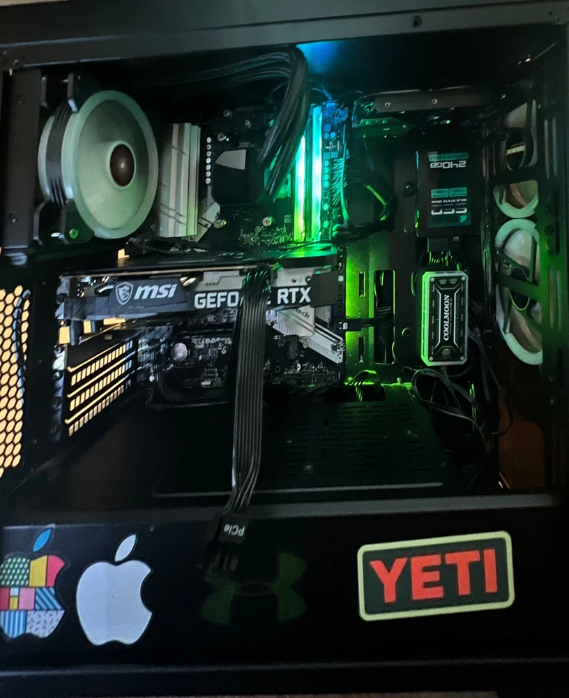 This is a used custom gaming PC desktop featuring an AMD Ryzen 5 5600X processor, NVIDIA GeForce RTX 3060 GPU, 16 GB RAM, 250 GB SSD capacity, 1 TB HDD capacity, liquid cooling, Windows 11 Pro operating system, and a mid tower form factor. It has integrated/on-board graphics, connectivity options including DisplayPort, HDMI, USB 3.0, and USB-C, and a maximum RAM capacity of 16 GB. I had for 2 years and i'm trying to sell before I go to college.