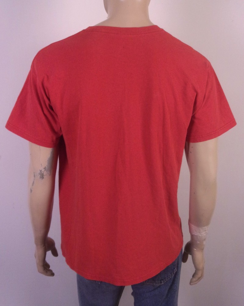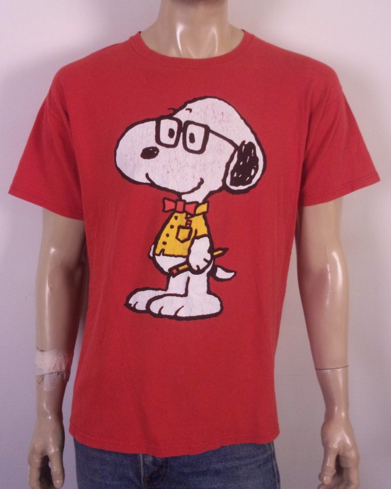 This vintage Y2K Peanuts Snoopy T-Shirt features a graphic print of Joe Cool with a big face, embodying the nostalgia of the 2000s era. Made of cotton and in a classic red color, this crew neck shirt with short sleeves offers a comfortable fit for men in size L. Perfect for all seasons, this T-shirt captures the charm of the iconic cartoon character Snoopy, making it a unique addition to any wardrobe for those who appreciate retro fashion. Pit to Pit: 22 Length: 27