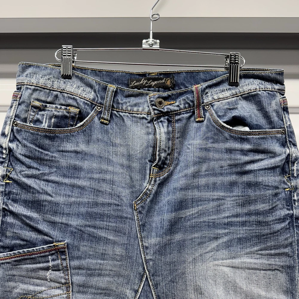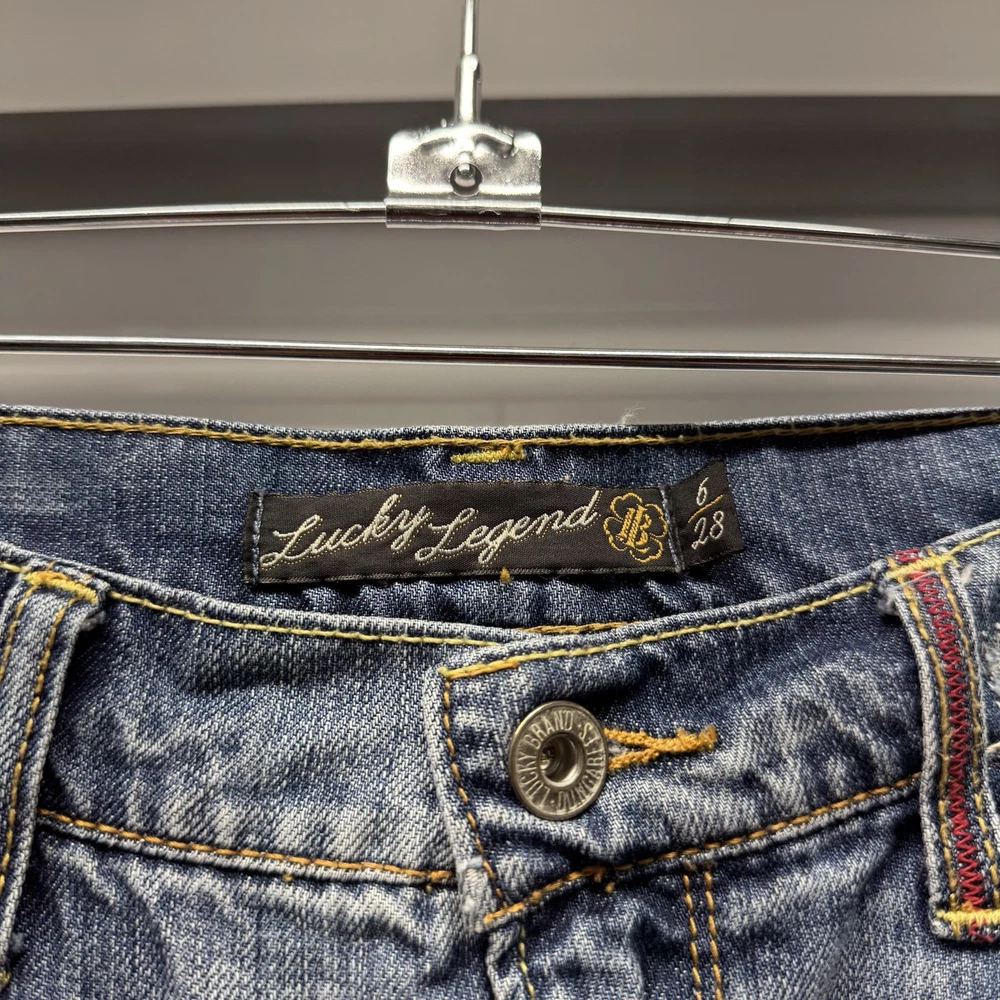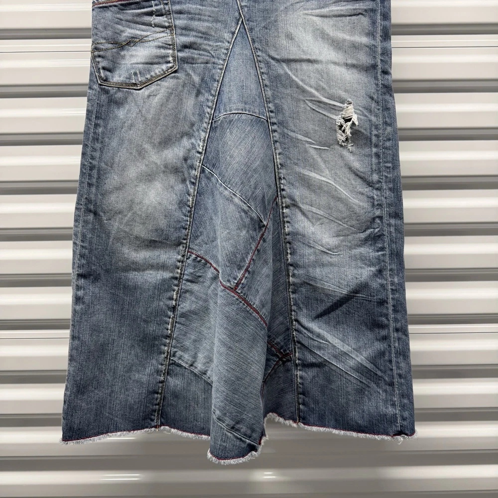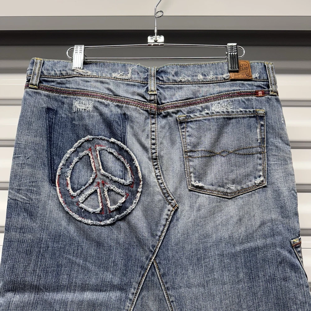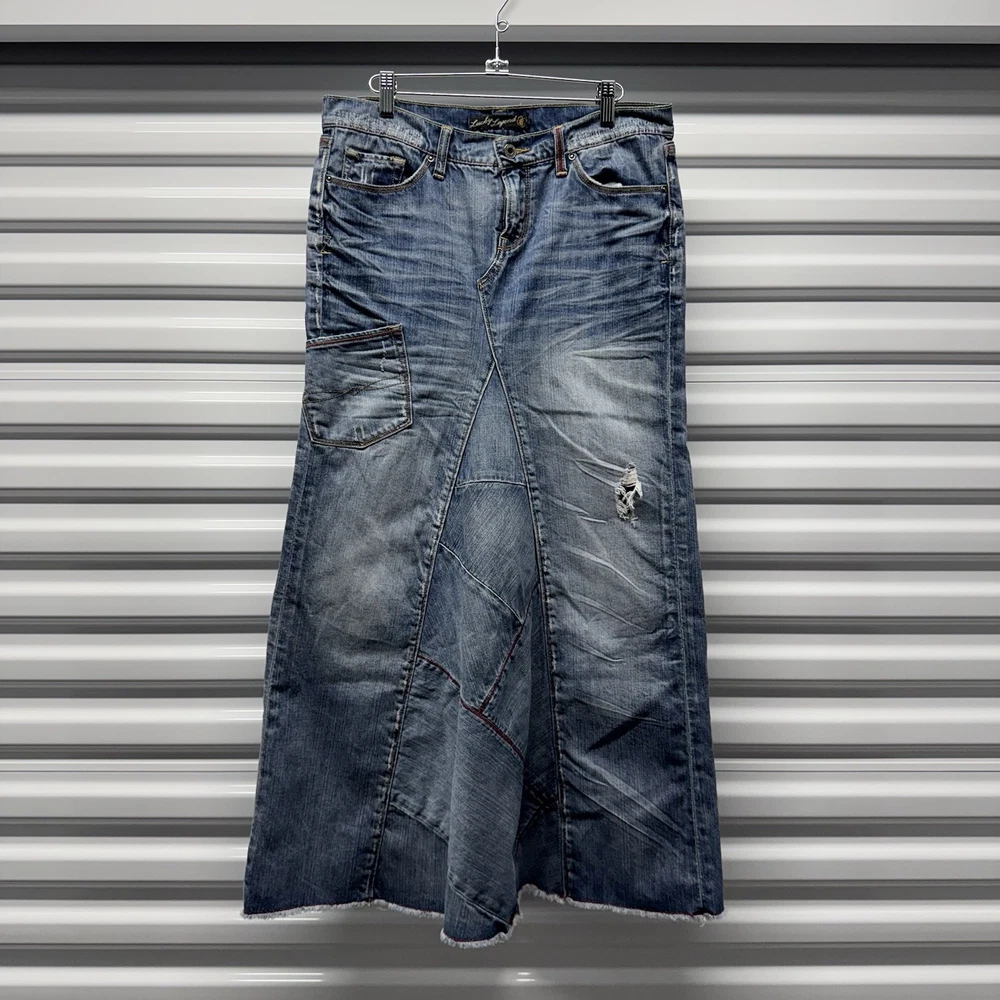 vintage 00's y2k lucky brand peace sign patch work maxi denim skirt