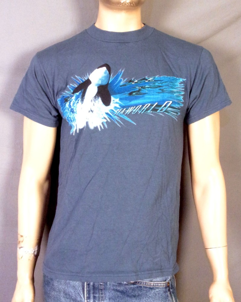 This vintage 90s 00s Y2K Tultex Sea World T-shirt features a solid gray color with a killer whale and Shamu design, perfect for those who love nature and animals. Made of cotton and machine washable, this regular fit t-shirt has a crew neck and short sleeves, ideal for both men and women. With a unique theme that captures the essence of the 90s and 00s era, this t-shirt is a nostalgic piece that showcases a love for marine life and wildlife. Measurements: Pit to Pit: 19 Sleeves: 7 Total Length: 26 Shoulders: 18.25