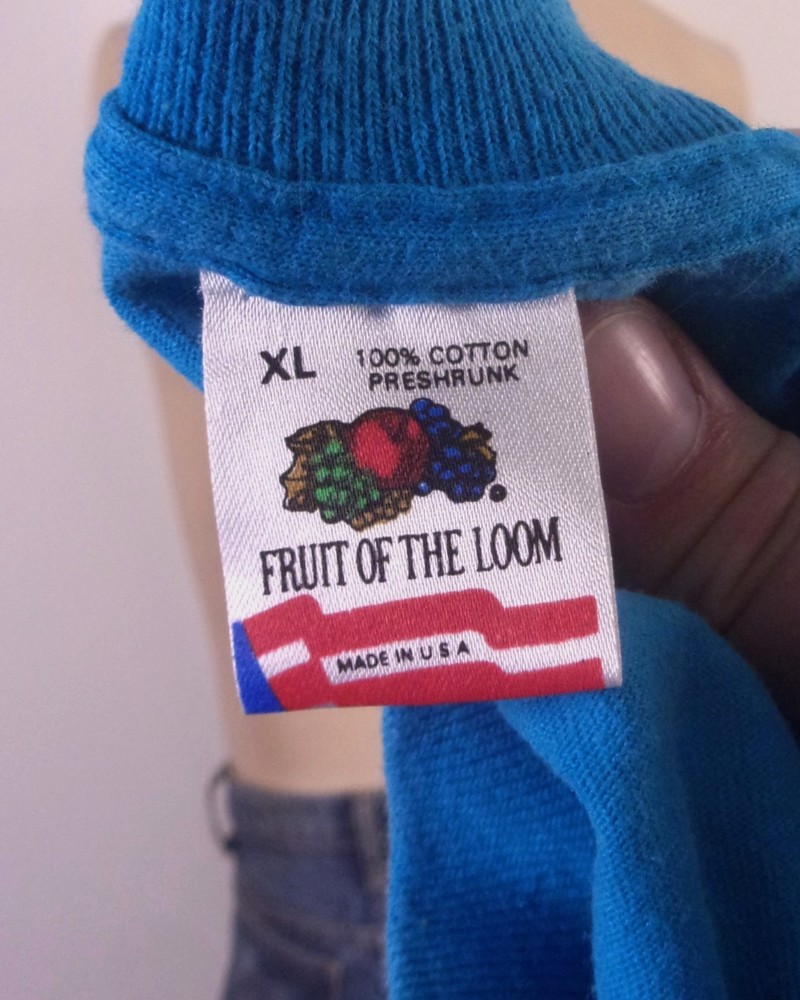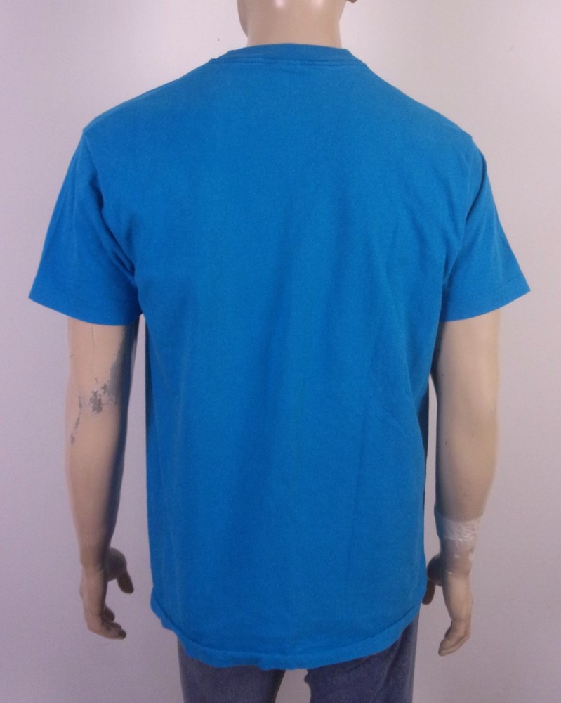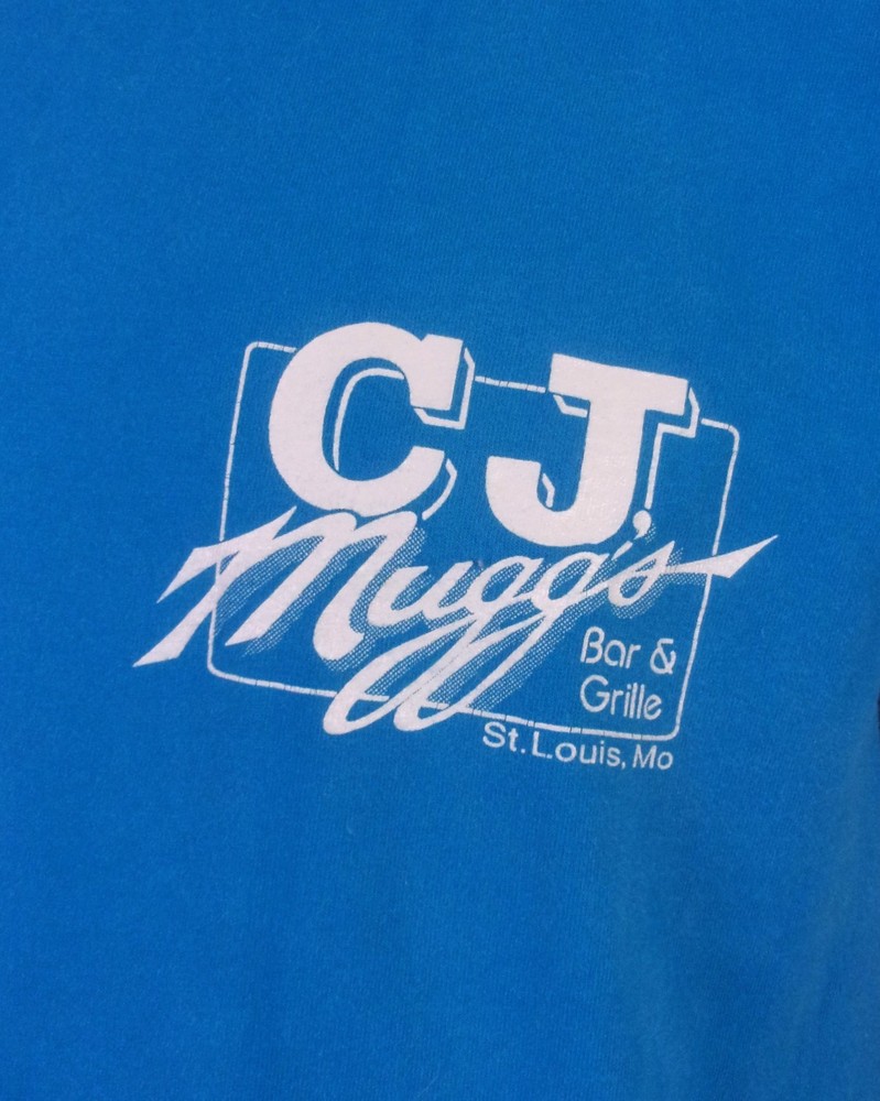 This vintage 90s FOTL single stitch CJ Mugg's Bar & Grille T-Shirt in size XL is a classic piece of men's clothing from the United States. Made of cotton with a graphic print design, this blue shirt features a crew neck and short sleeves, perfect for a regular fit. The single stitch style and 80s/90s theme add to its retro appeal, making it a unique addition to any wardrobe. Pit to Pit: 21 Length: 29