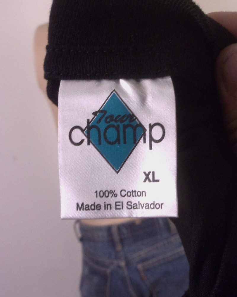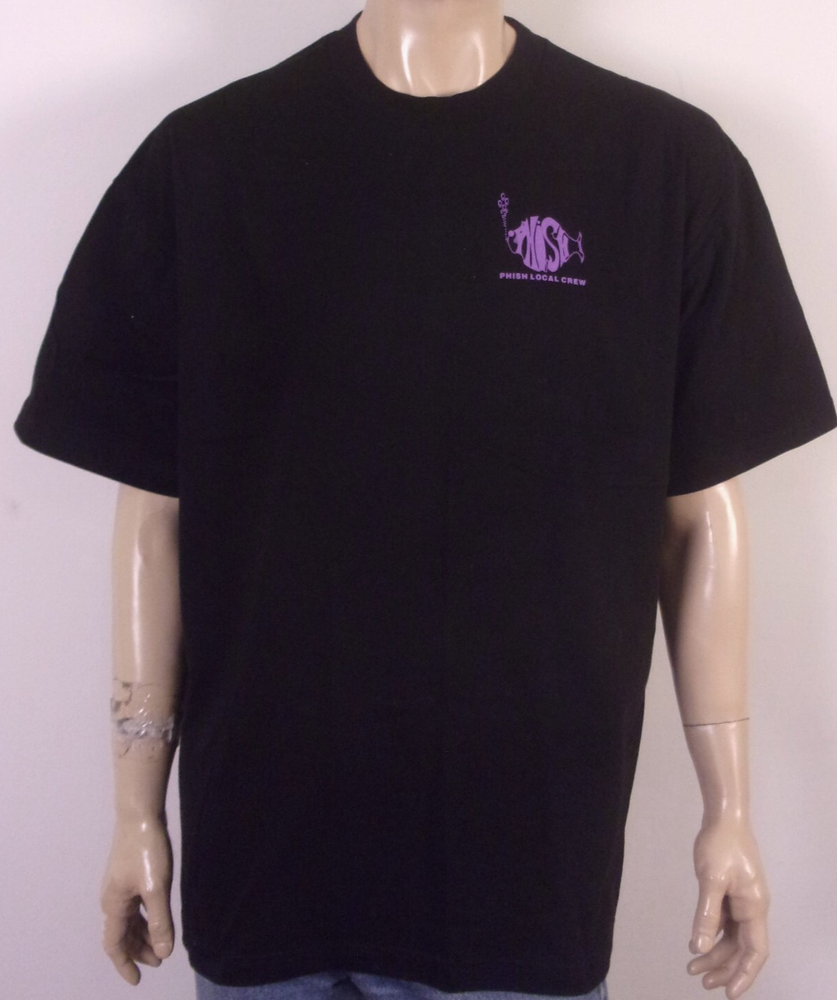 This vintage 90s Tour Champ Phish Crew T-Shirt in size XL features a black color with a logo on the front. Made of cotton, it has short sleeves and a crew neck. Ideal for Phish band enthusiasts, this shirt is machine washable and showcases the theme of a concert tour crew from the 90s. Looks awesome! Rare 90's Phish tee, no location or date but it's from a local crew for a show somewhere from the mid to late 90's. MEASUREMENTS: Pit to Pit: 24.5 Sleeves: -- Length: 30
