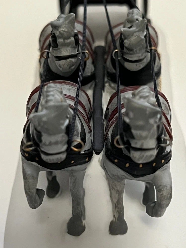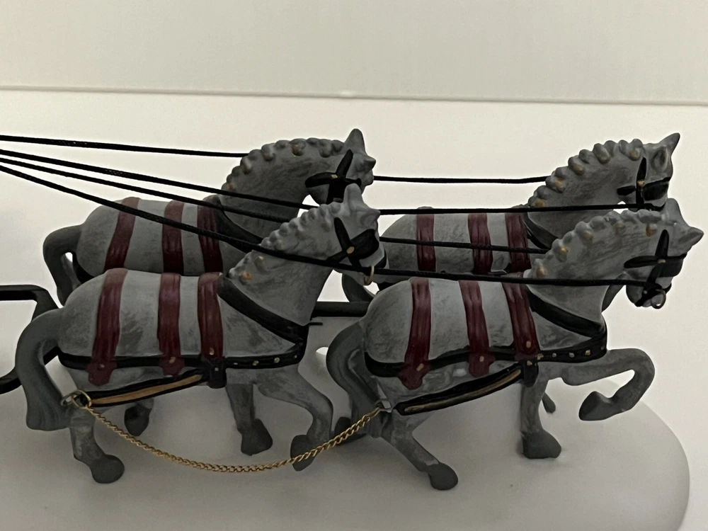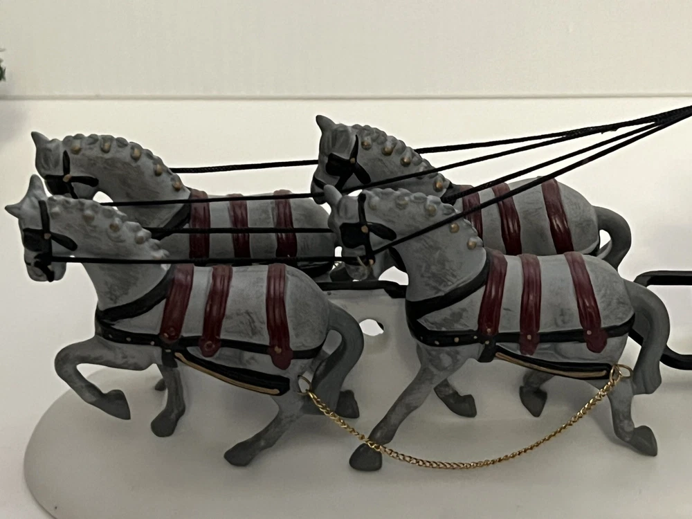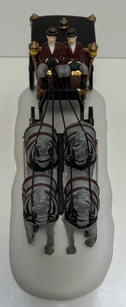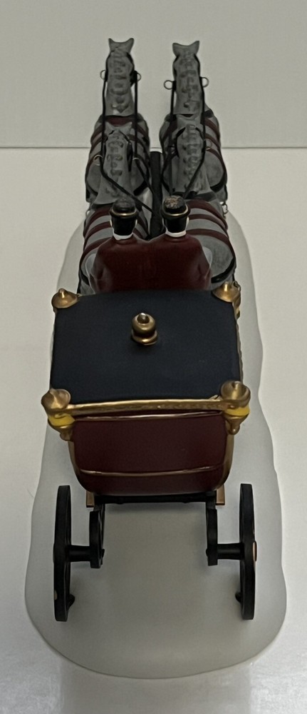 Listing for a 1989 Department 56 Dickens Village figurine ROYAL COACH featuring a Victorian coach with two coachmen and four gray horses pulling the coach. This figurine was retired in 1992. It is in mint condition with original box and packaging material. No chips or discoloration. The outer sleeve to the box has very little storage wear. It is approximately 11 inches wide and 5 inches tall. From my mom's large Dicken's Village collection and she was very particular when putting them away for storage. I will be listing from this collection daily. Thank you for checking it out. Shipped USPS Ground Advantage and shipping will automatically be combined with other items when placed in your cart