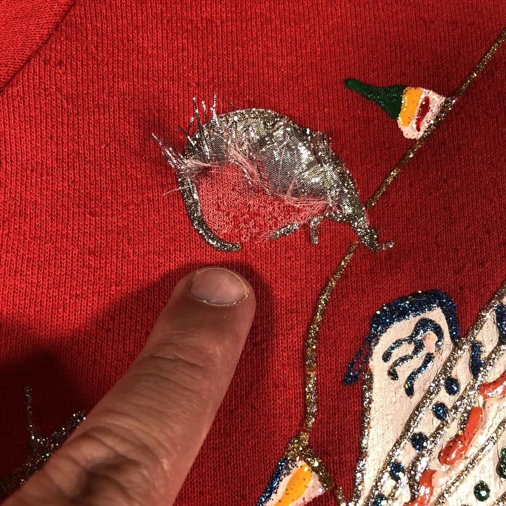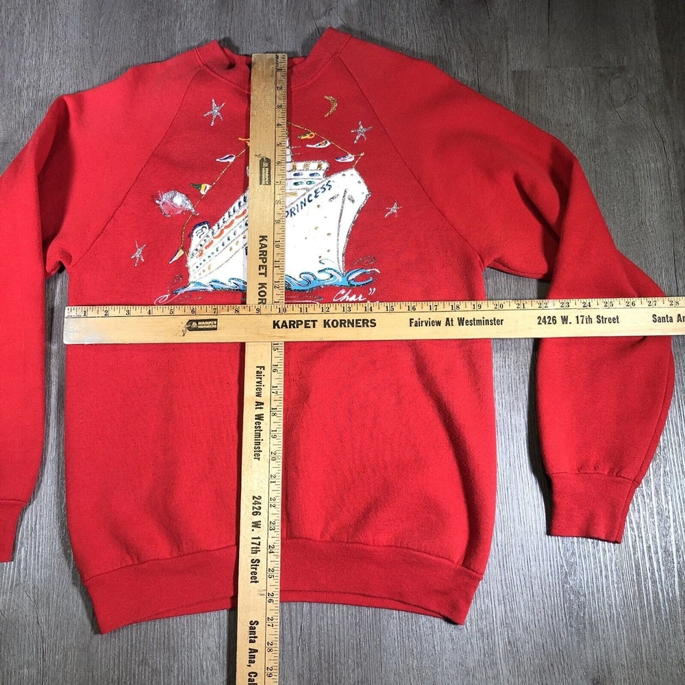 vintage Crew Neck Sweater Red Size large royal princess sweater Ship Glitter embroidered char 1980s fruit of the loom women womens womens sweatshirt Flaws shown on the front and back. The back hasnt been spot treated.
